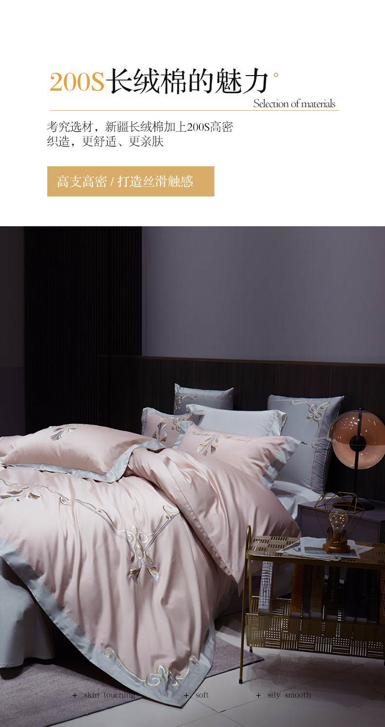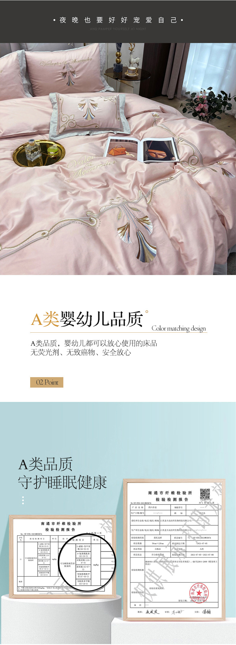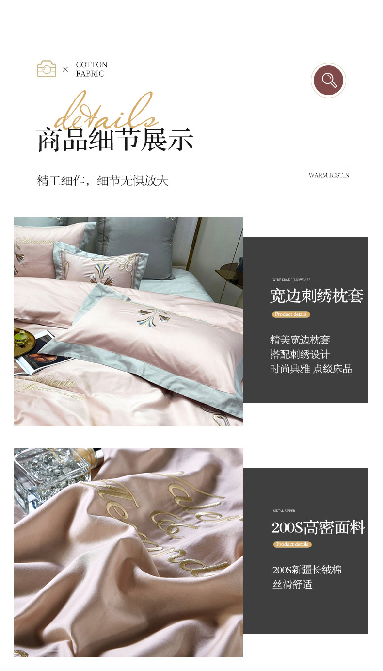 商品名称:家居1号2024新款新疆长绒棉刺绣四件套路易斯 路易斯-公主粉
