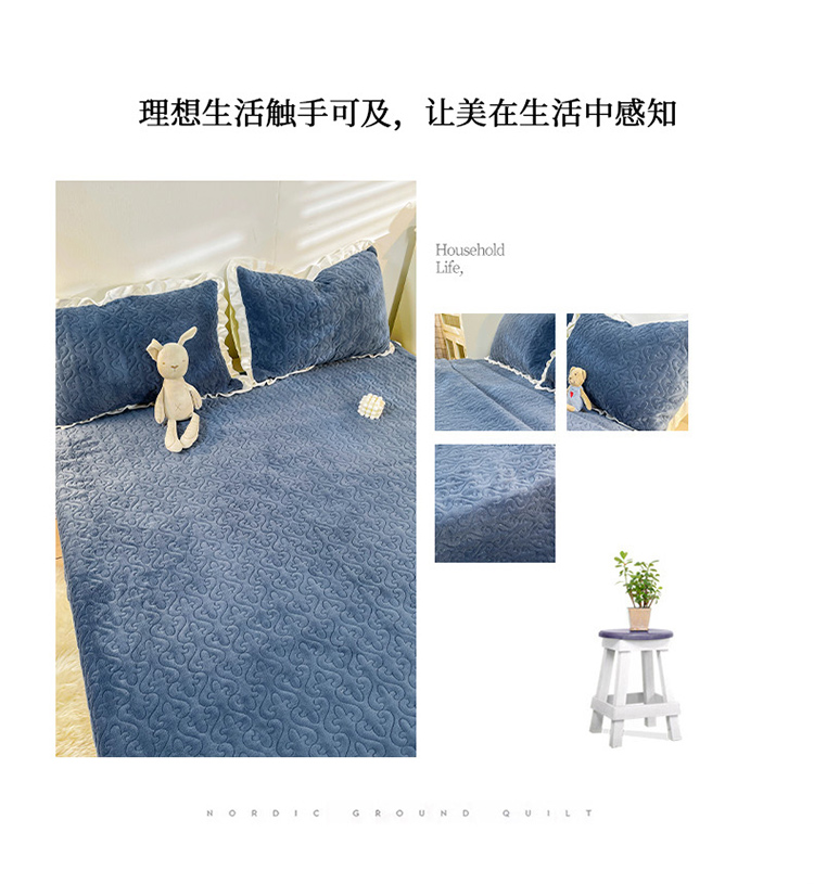 • 91家纺网 家纺一手货源 找家纺 沐辰2021新款加厚牛奶绒荷叶边款床盖 深海蓝