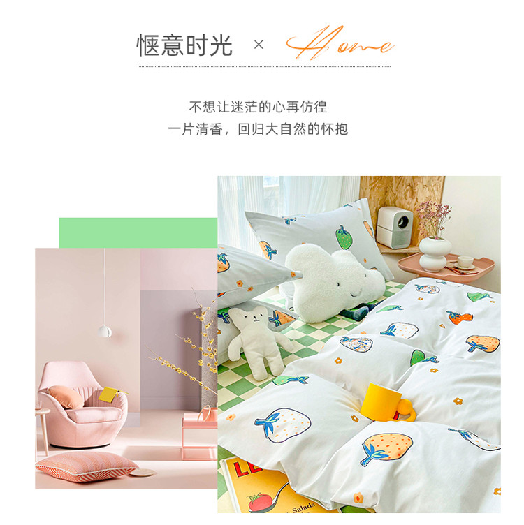 (总)感遇家纺 2022新款全棉印花四件套,格子草莓,花晓,滑板小熊,萌宠,时光,兔宝宝,熊先生
