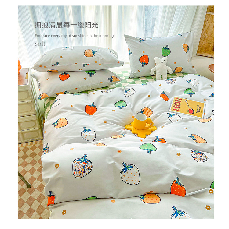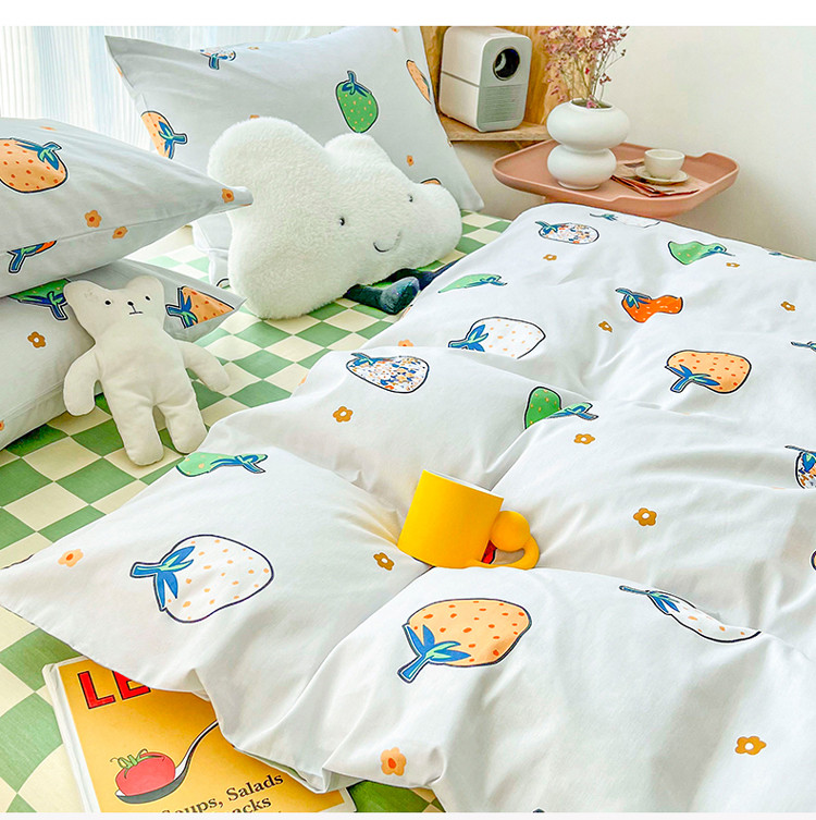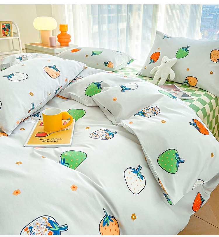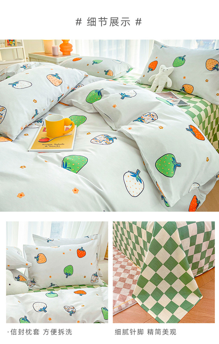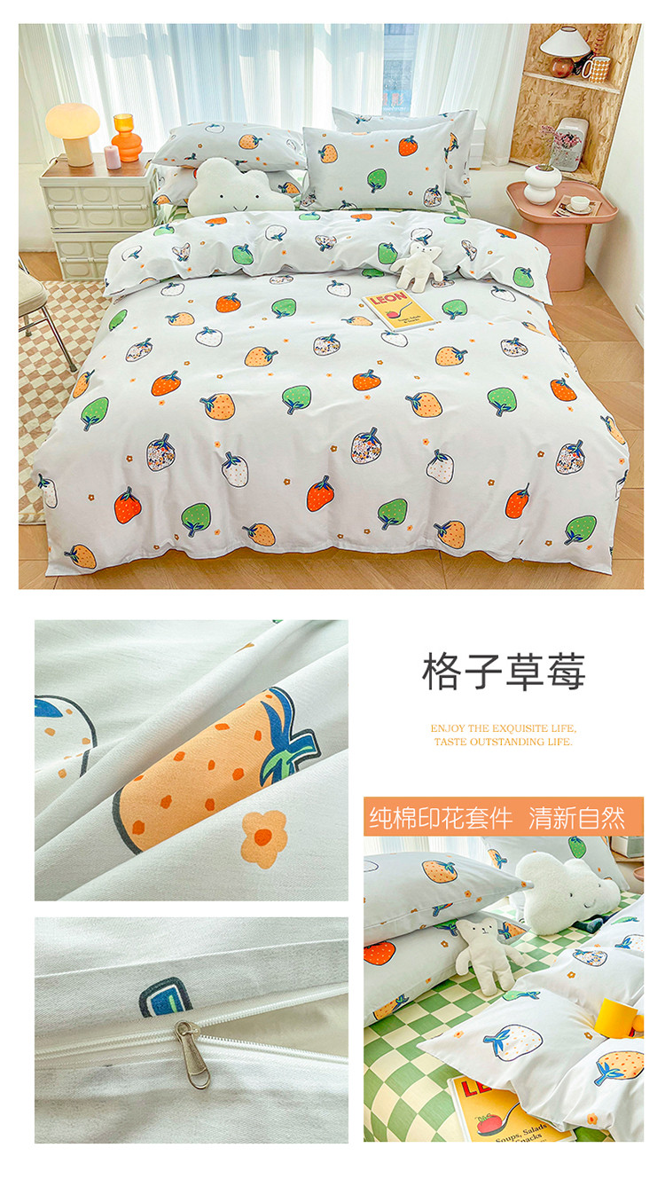 感遇家纺 2022新款全棉印花四件套 格子草莓