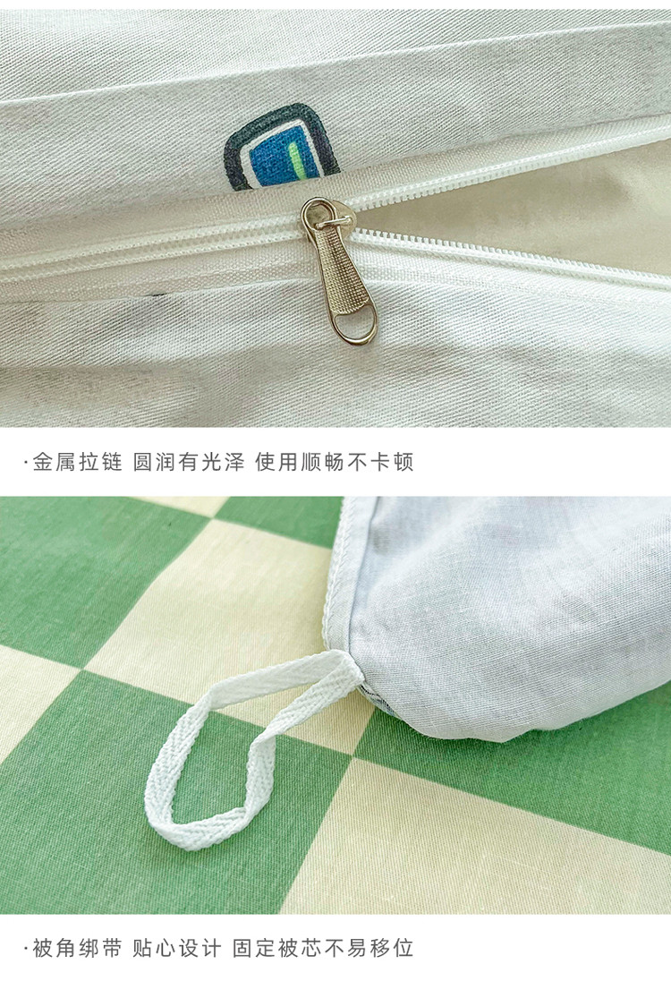 (总)感遇家纺 2022新款全棉印花四件套,格子小花,黑格恐龙,蓝色心情,浅暖