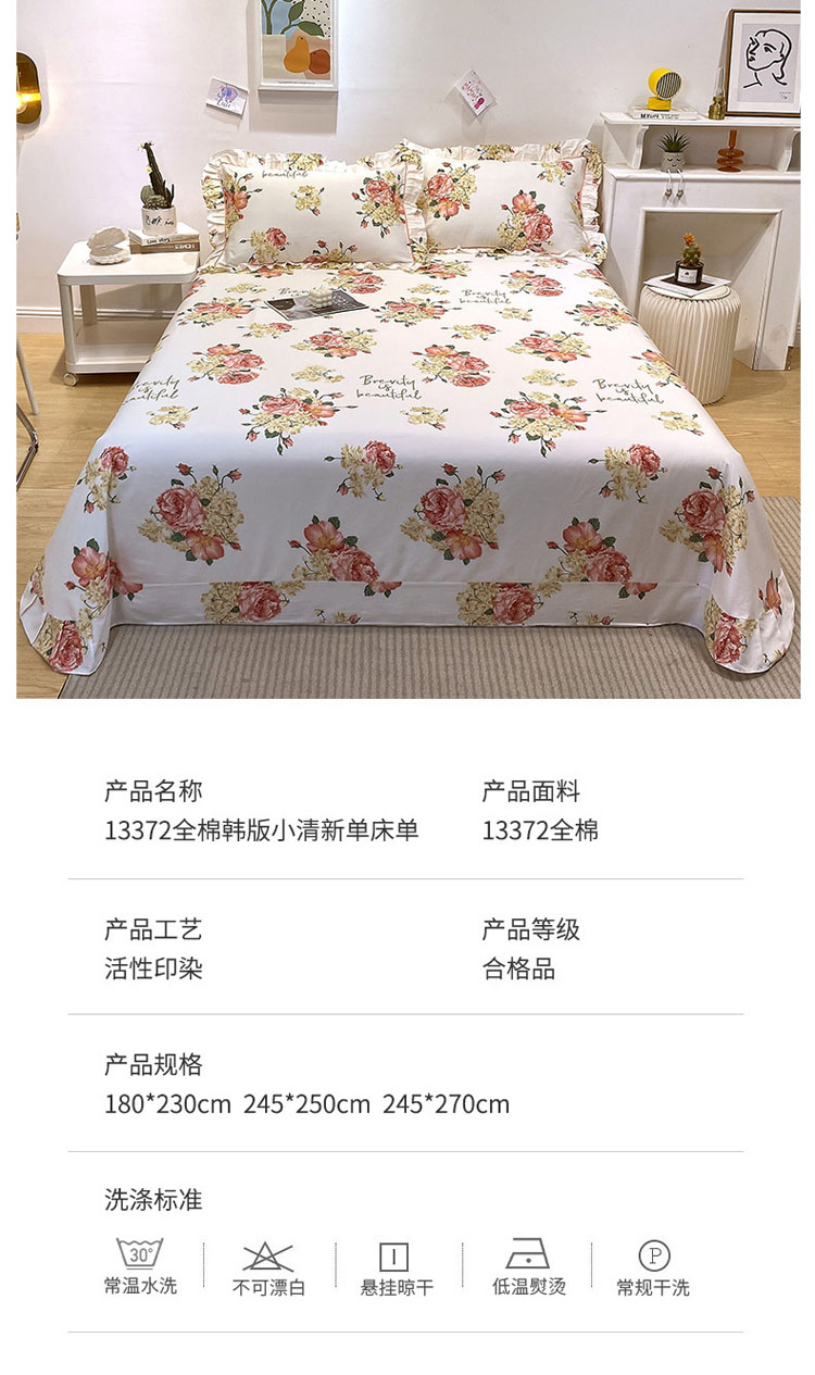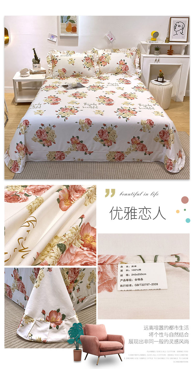 商品名称:宝齐莱 2022新款13372韩版全棉印花单床单 优雅恋人-1