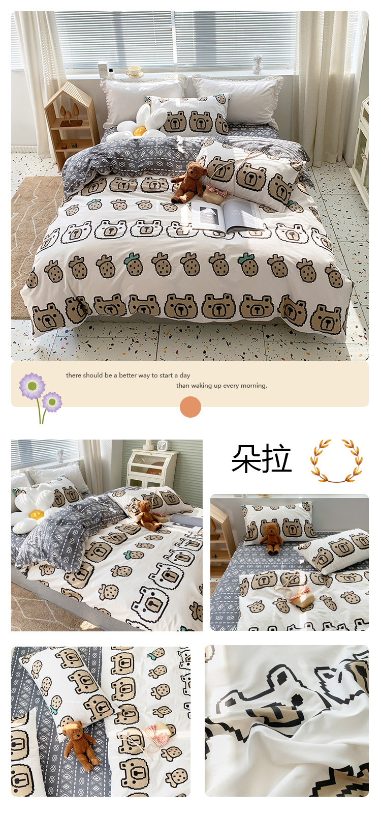 (总)2025新款全棉印花加绣花四件套,斑点狗,举手兔-咖,举手兔-蓝,快乐黑猫,猫小乐,小旺仔,熊小萌