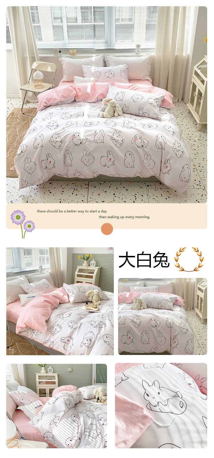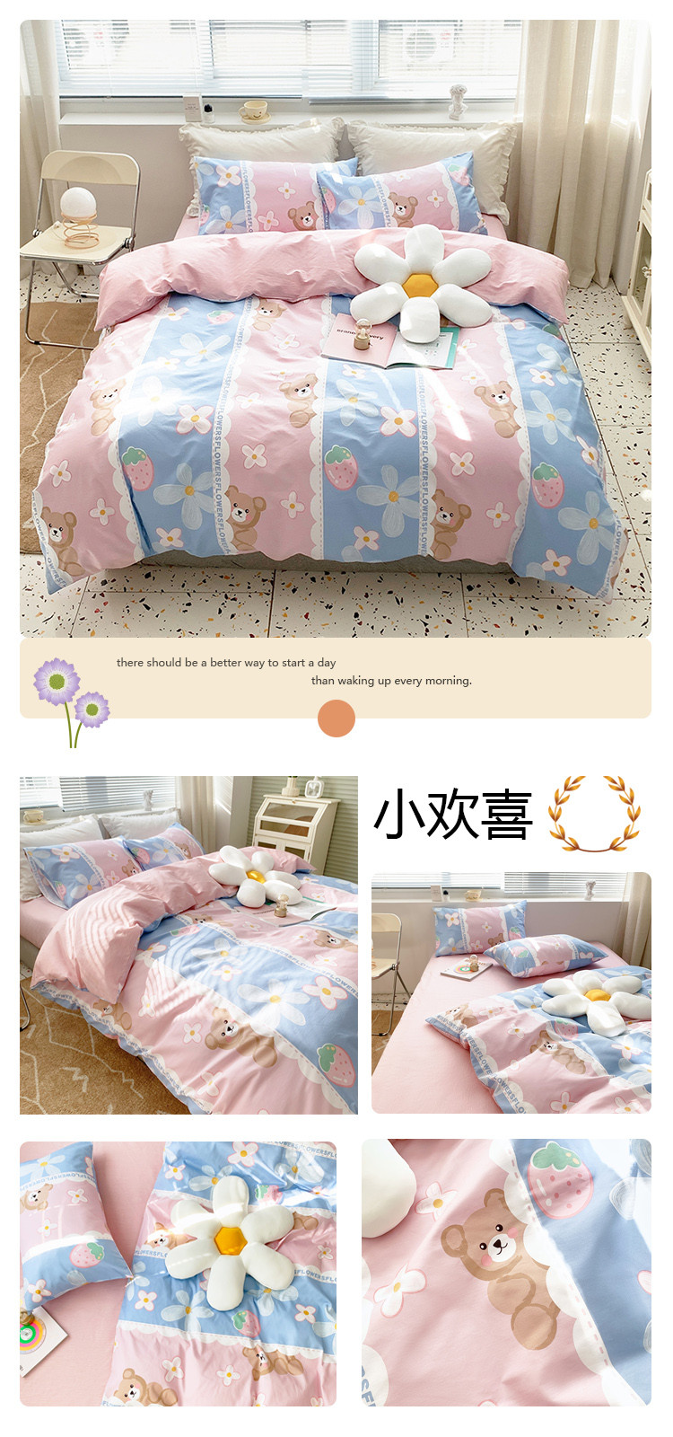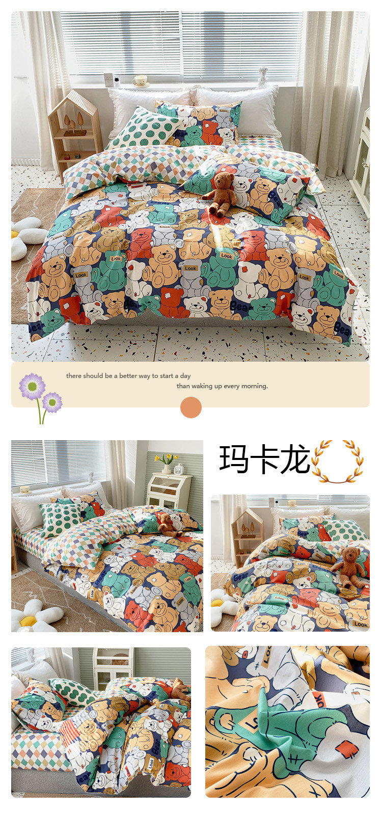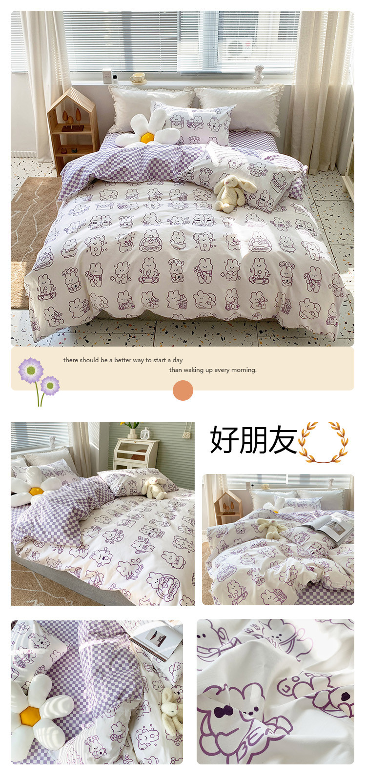 (总)怡家居 2025新款全棉纯棉磨毛绣花四件套-普通款,布丁狗,彩虹狗狗,魔法喵,七彩小熊,条纹小兔