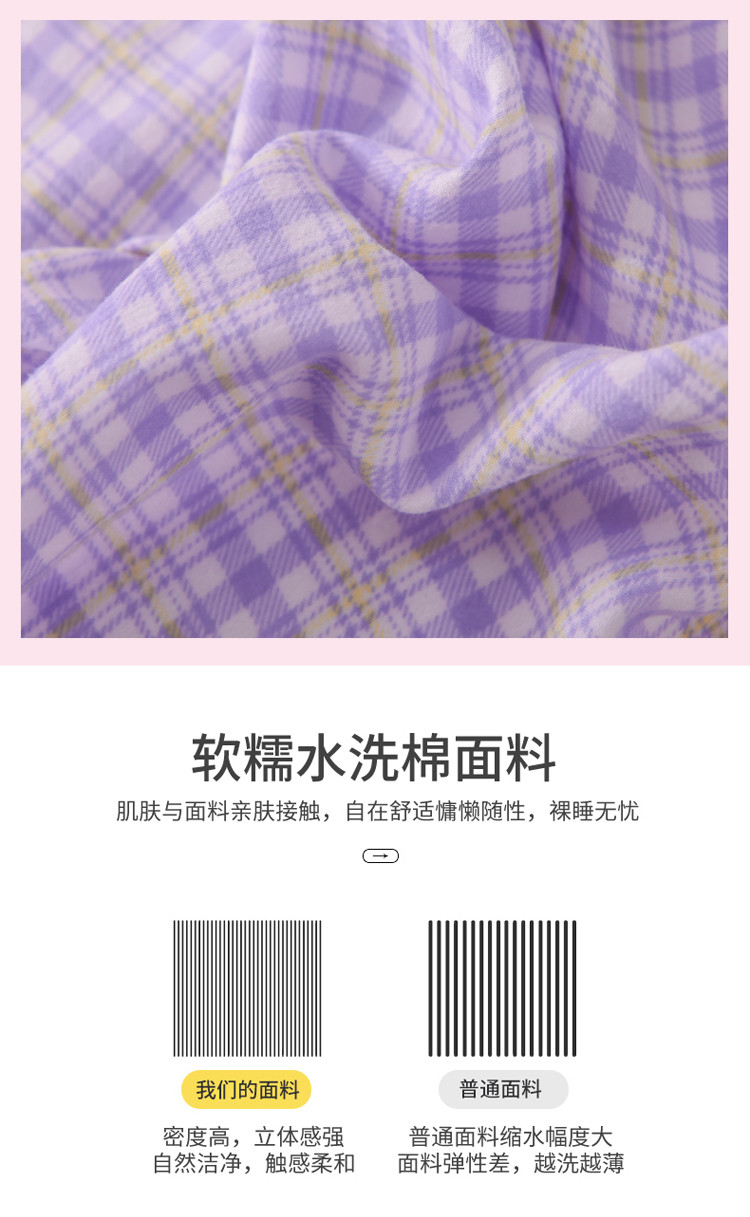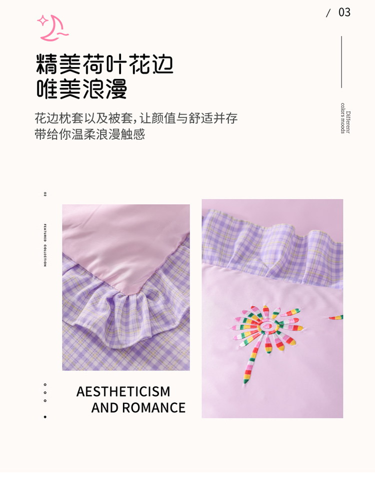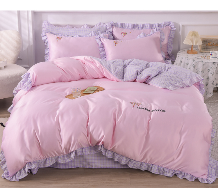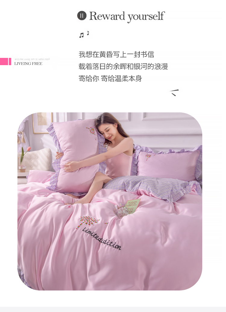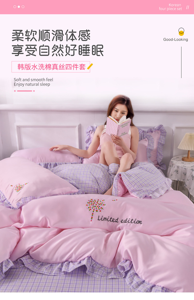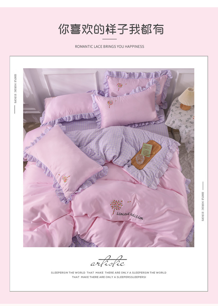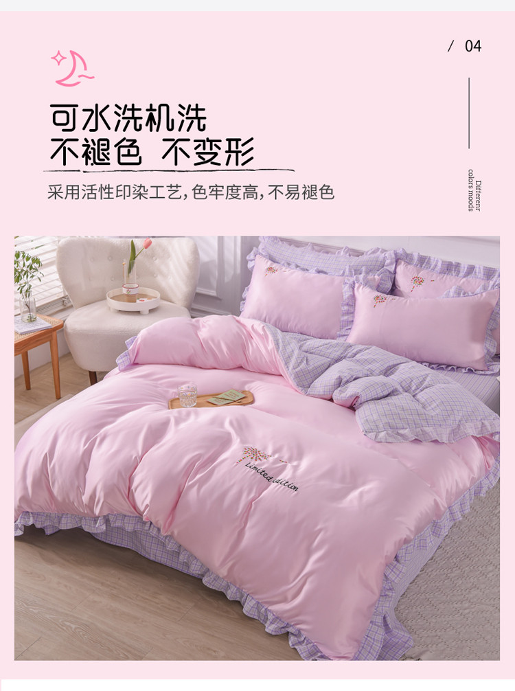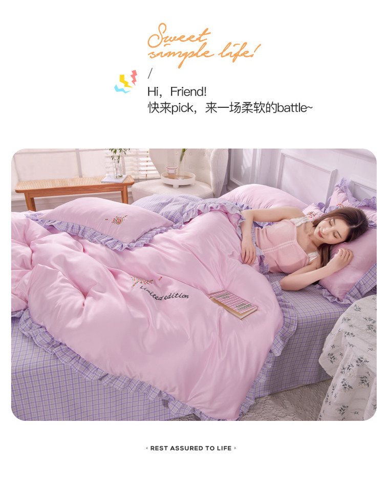 欧冠 2022新款水洗真丝加水洗棉刺绣幸福花系列四件套 幸福花-紫粉