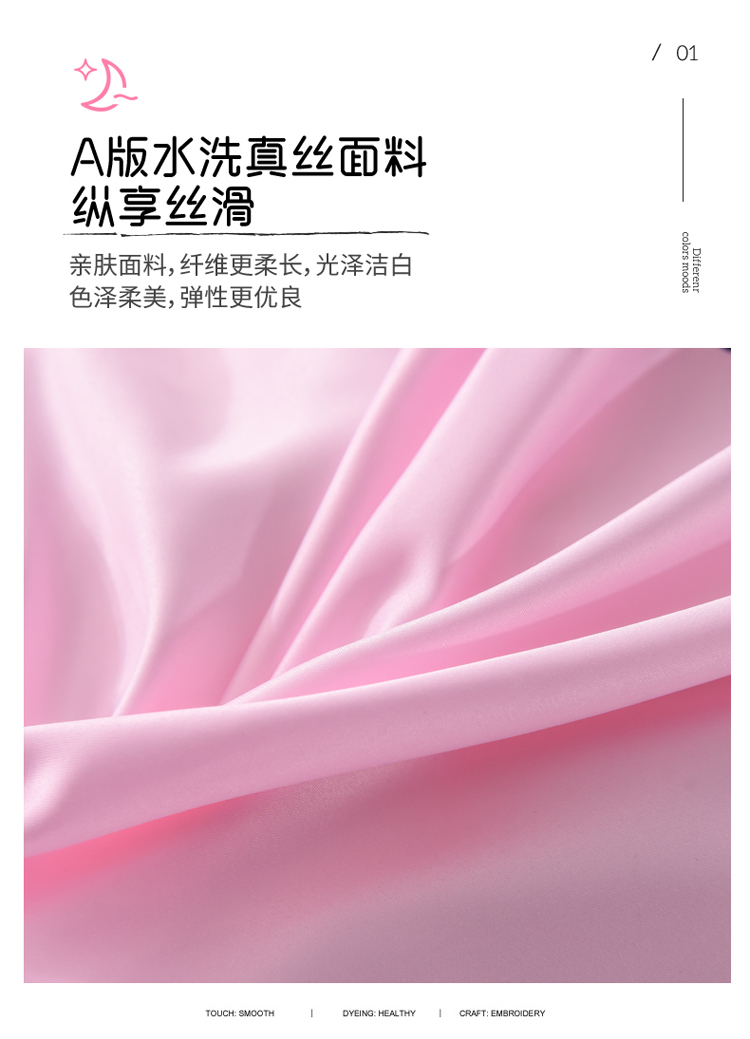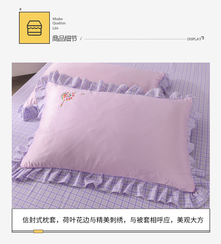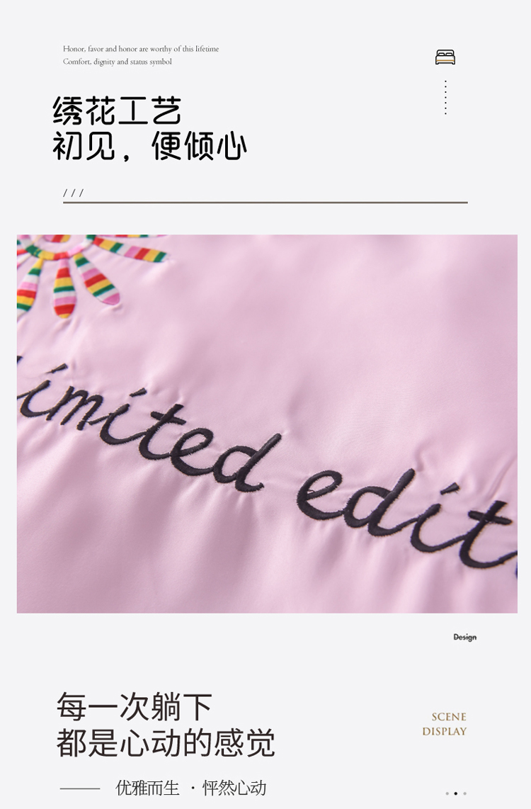 商品名称:欧冠 2022新款水洗真丝加水洗棉刺绣幸福花系列四件套 幸福花-紫粉