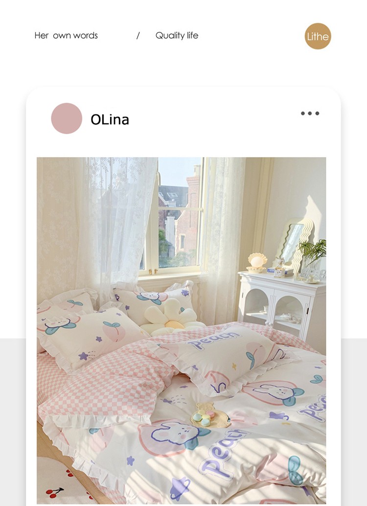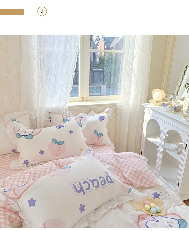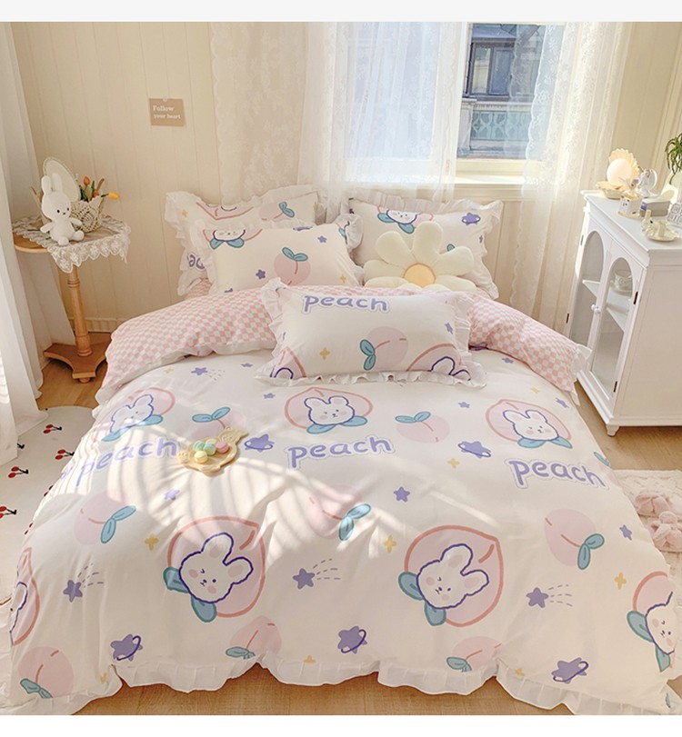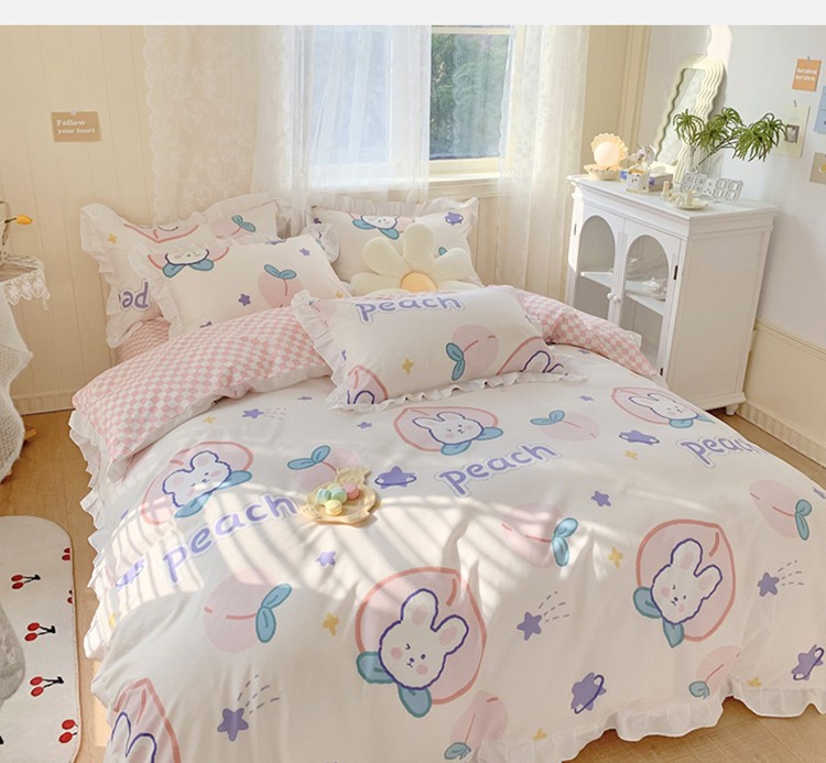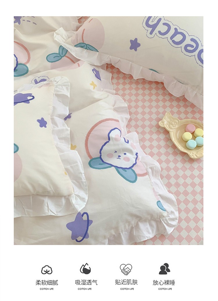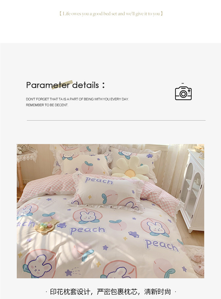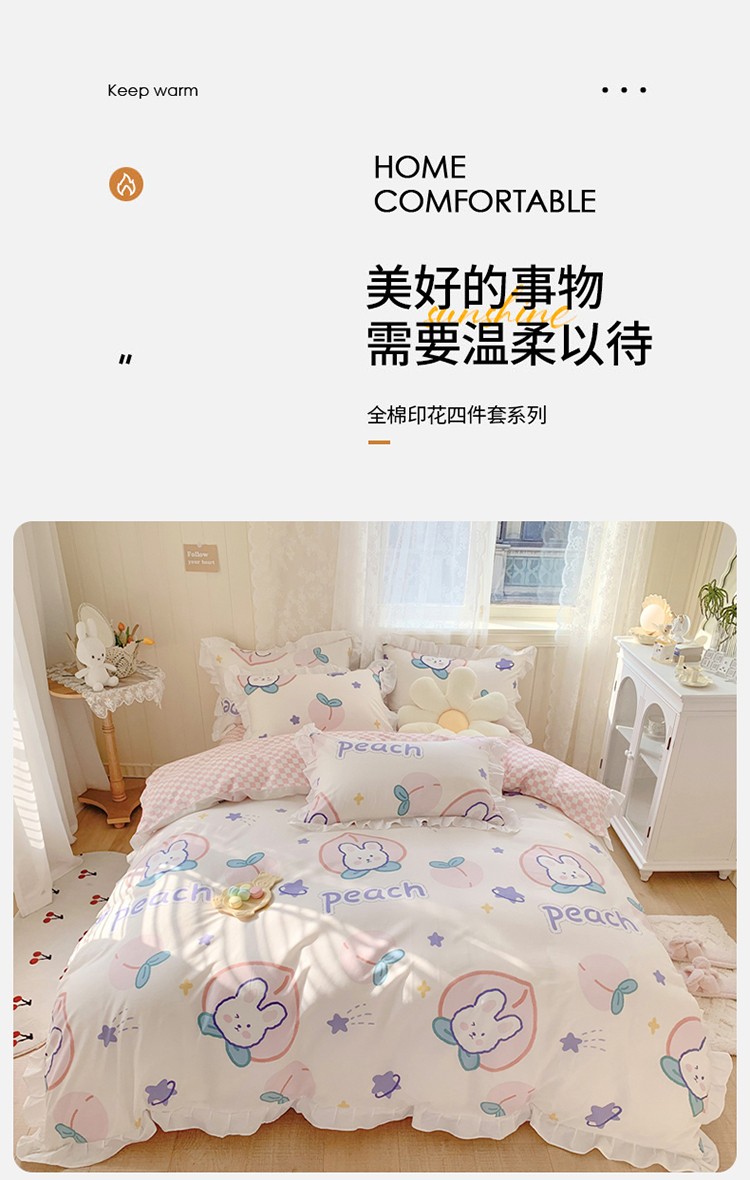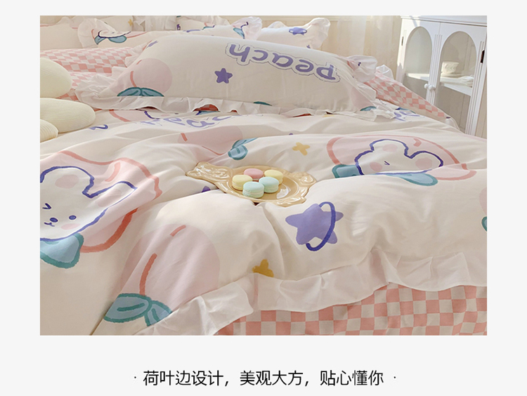 商品名称:眠屿 2022春夏新品全棉印花花边款四件套 兔桃桃