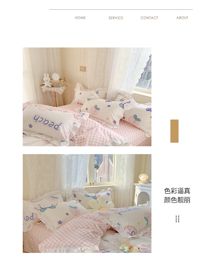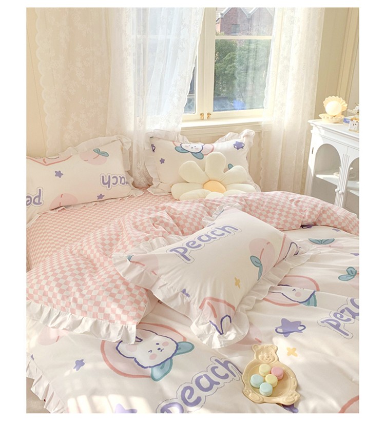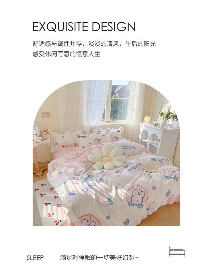 眠屿 2022春夏新品全棉印花花边款四件套 兔桃桃