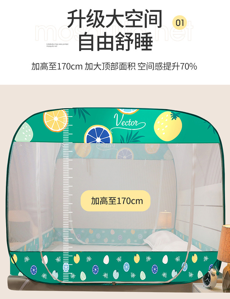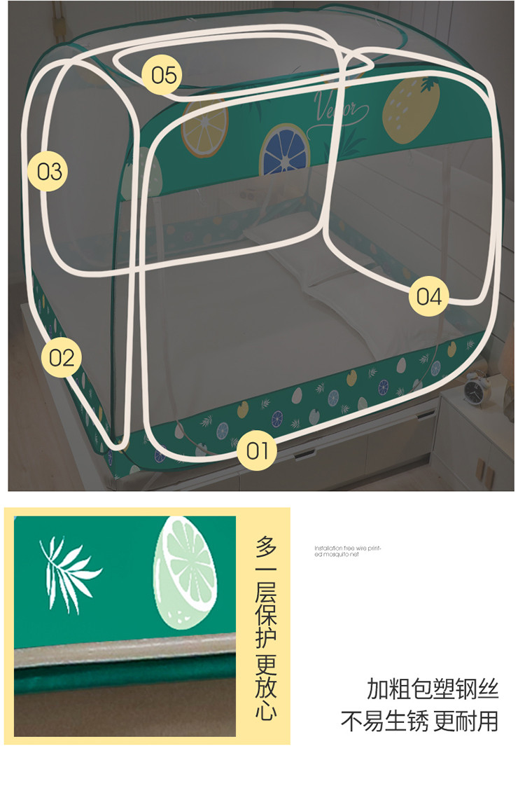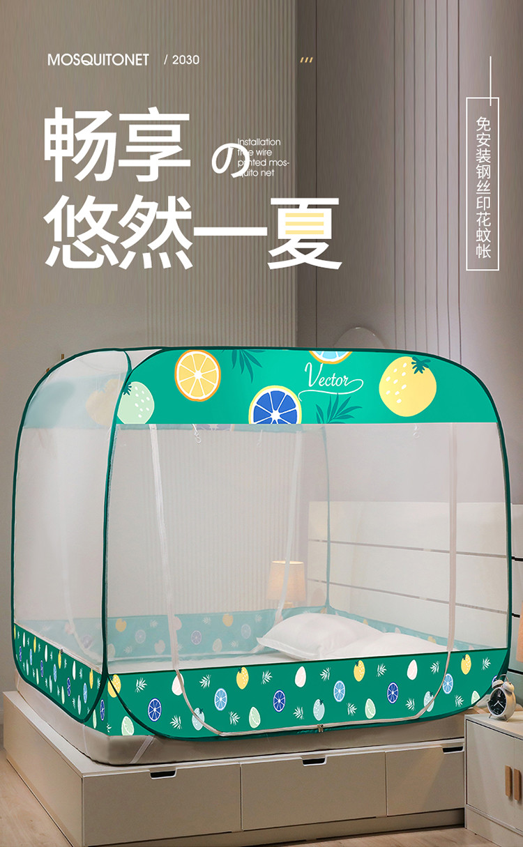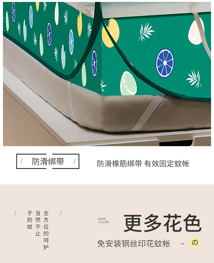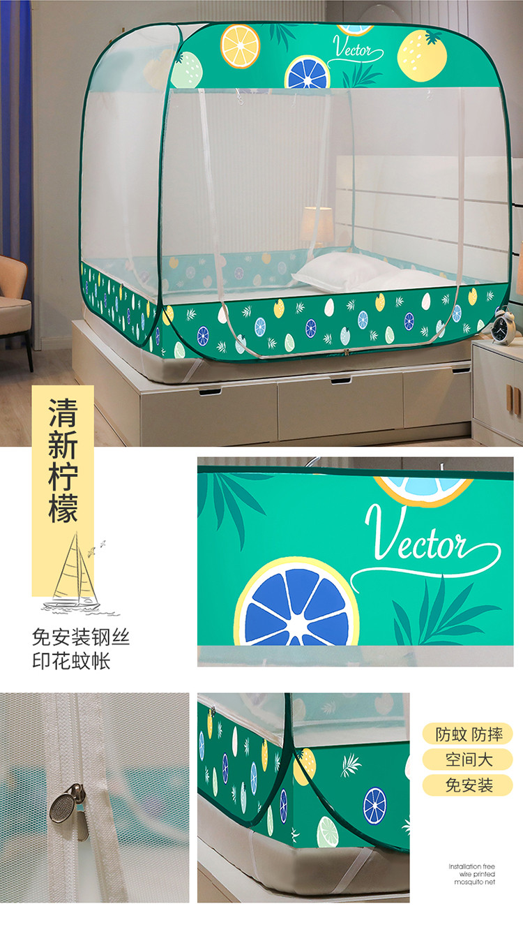 商品名称:博诺蚊帐 2022新款免安装钢丝印花蚊帐 清新柠檬