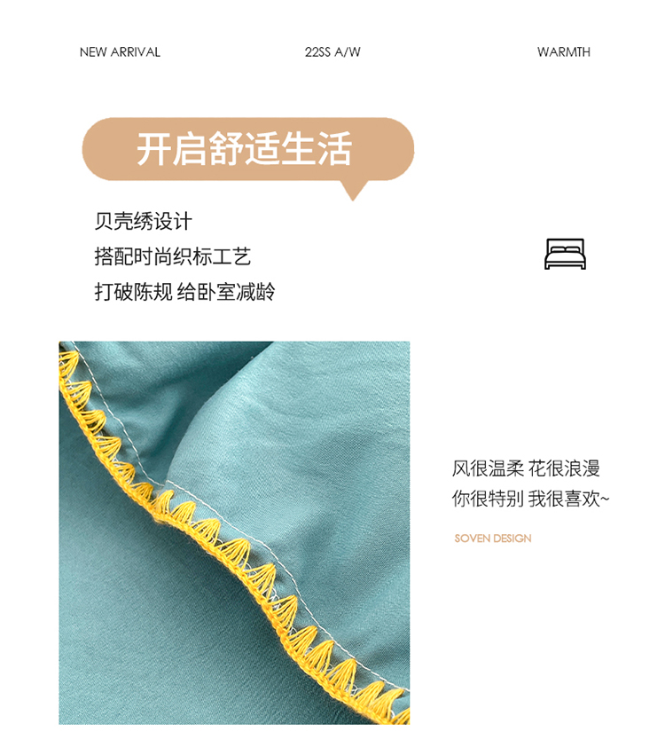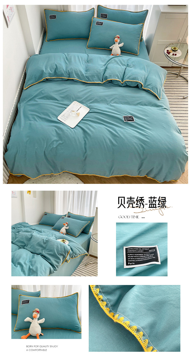 商品名称:绒兔兔 2022新款奢丝棉贝壳绣工艺床单床笠四件套 贝壳绣-蓝绿