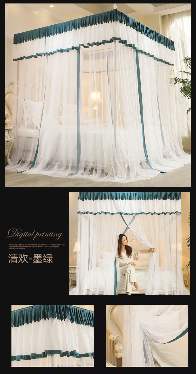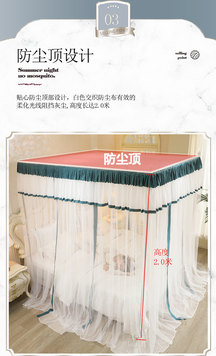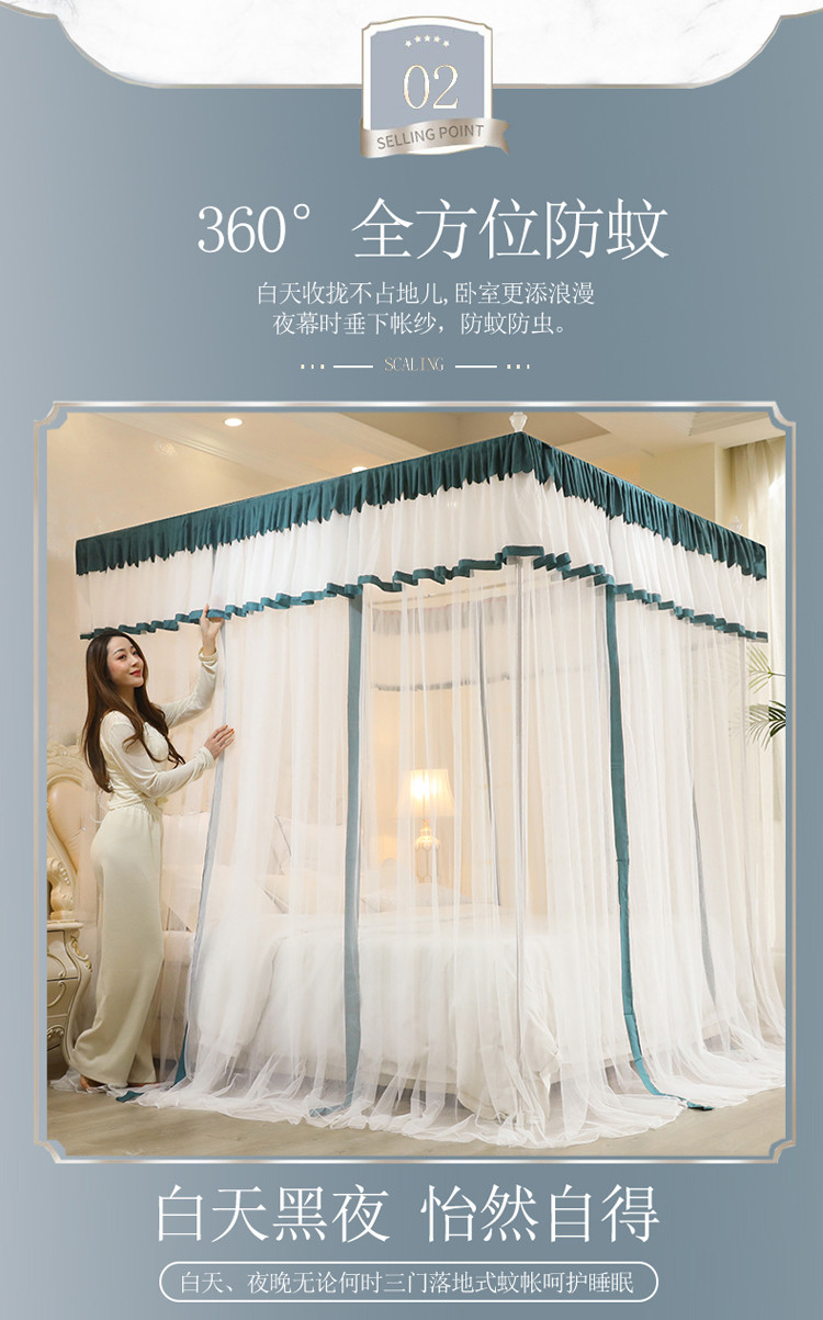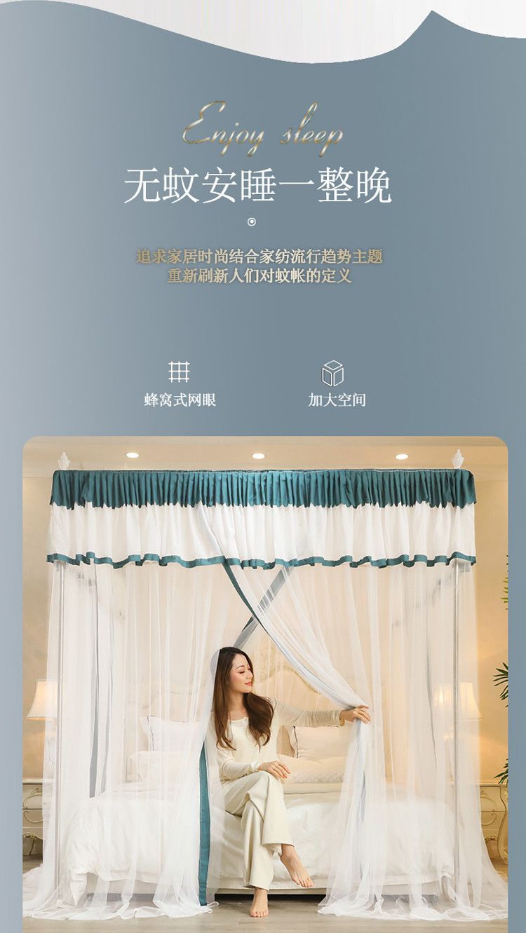 当前位置: 91家纺网 > 商品网购 > 床上用品 > 蚊帐 > 免安装蚊帐 > 迷仙巢2022新款三开门落地式防尘顶蚊帐A20清欢清欢-墨绿