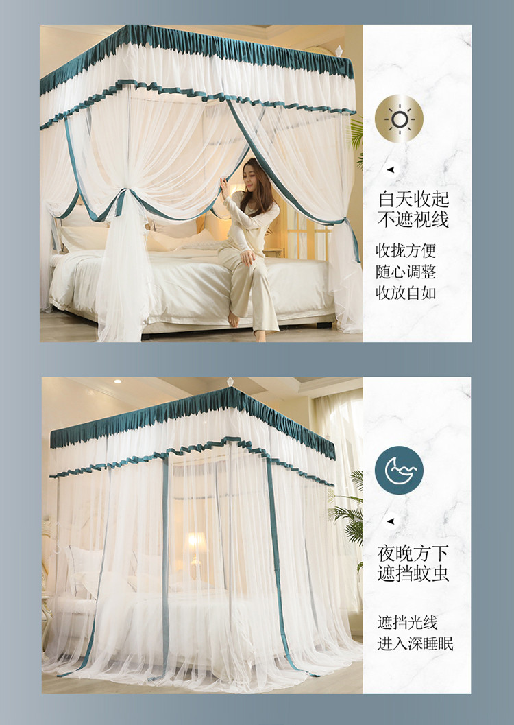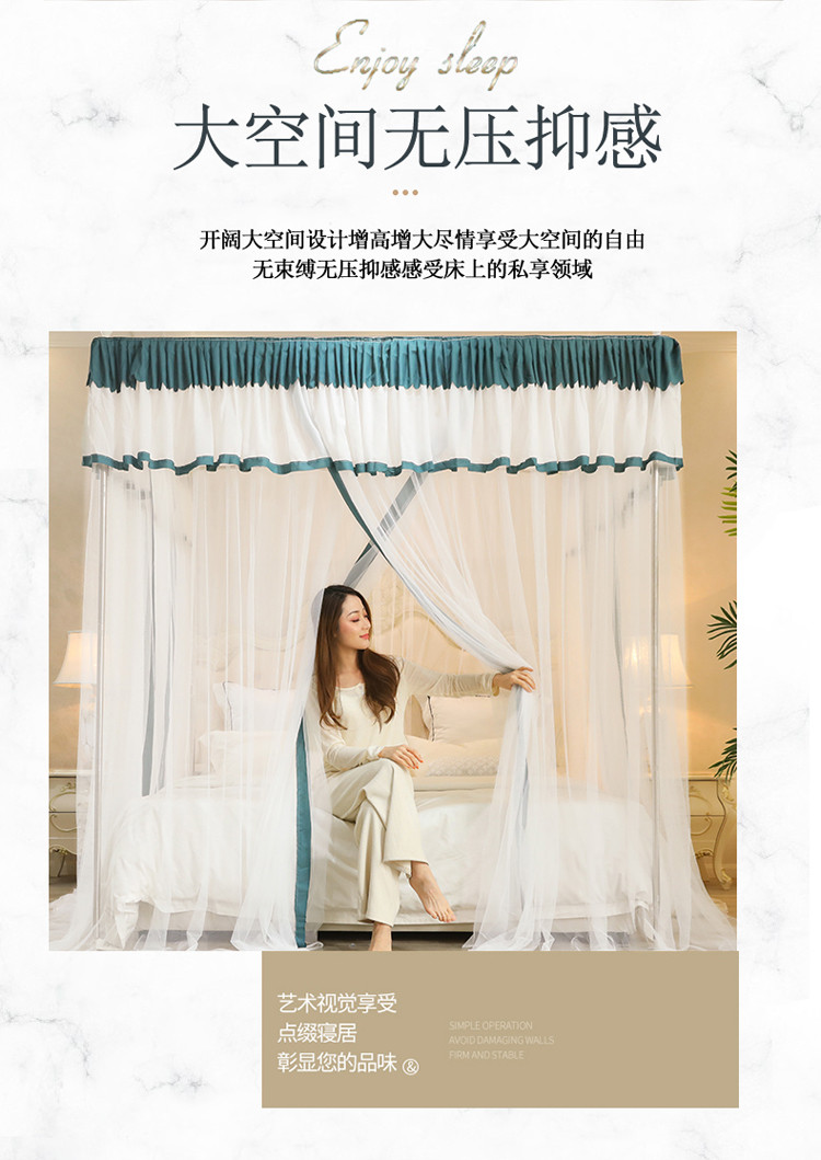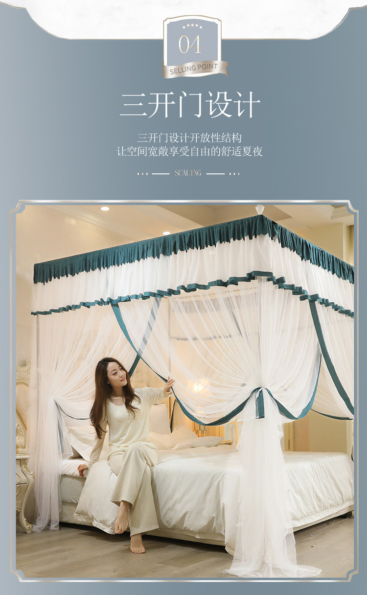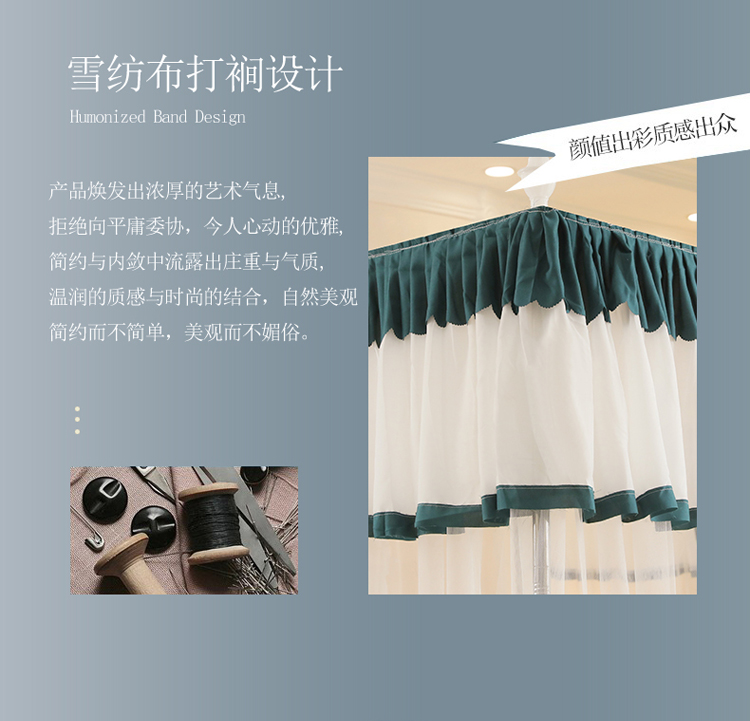 当前位置: 91家纺网 > 商品网购 > 床上用品 > 蚊帐 > 免安装蚊帐 > 迷仙巢2022新款三开门落地式防尘顶蚊帐A20清欢清欢-墨绿
