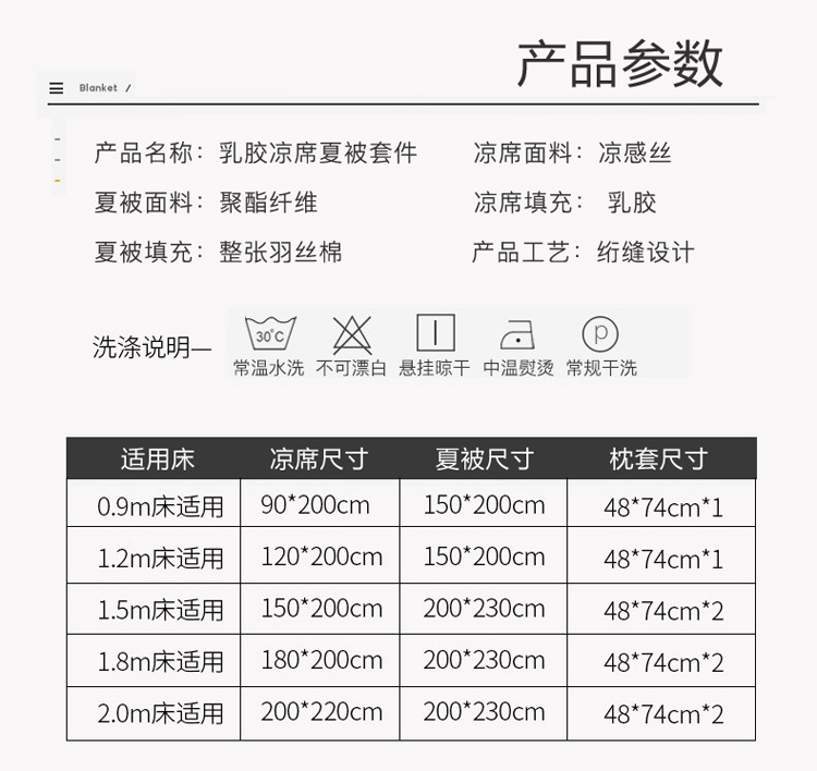 三件套(凉席:90*200+夏被:150*200) | ¥76.00 |