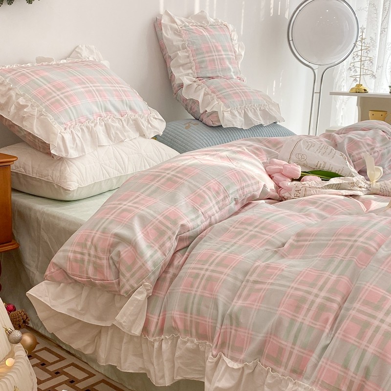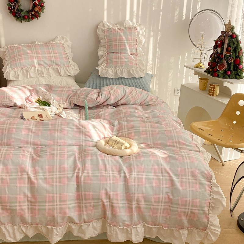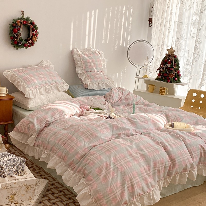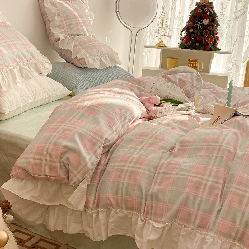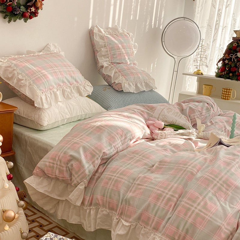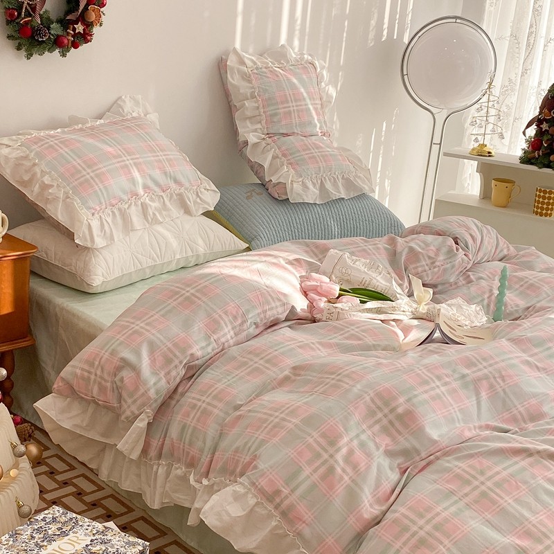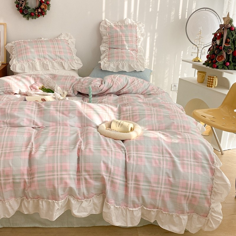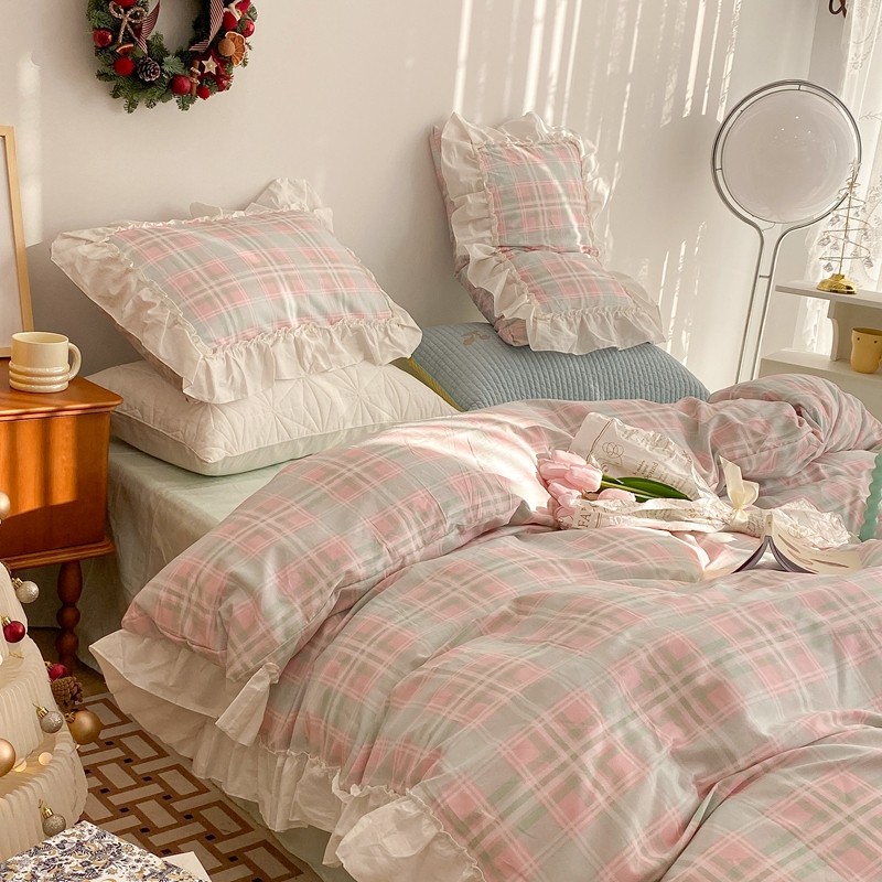 昔可2022新款花边格子系列四件套 爱丁堡格
