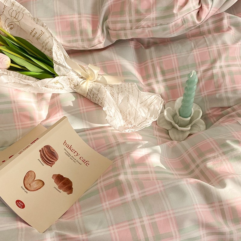 (总)昔可 2023新款全棉ins格子混搭系列四件套,ins简约绿格,粉蓝格,开心果格,学院格纹,粉绿格,海盐兰格,黄绿格,夏日蓝条,芝士黄条,紫芋泥芝士格