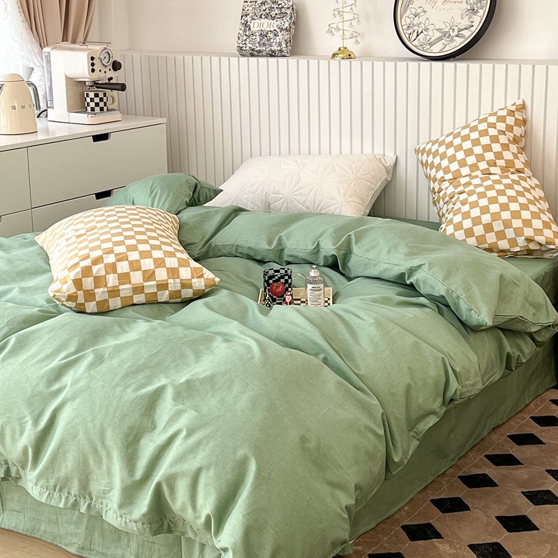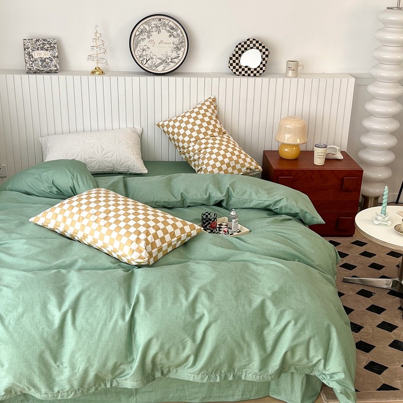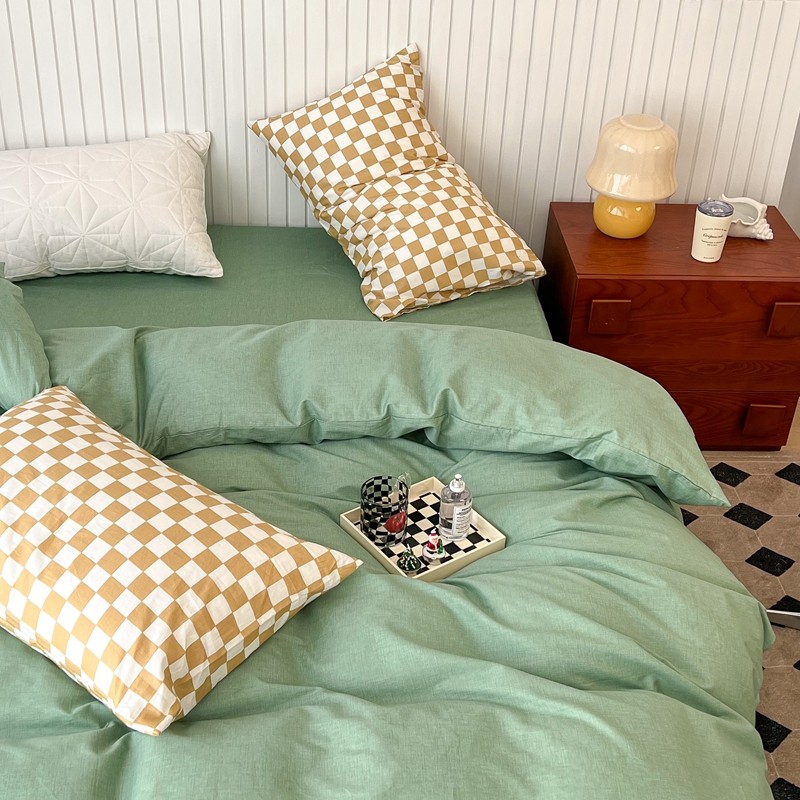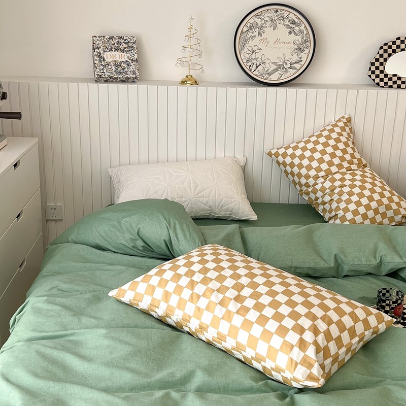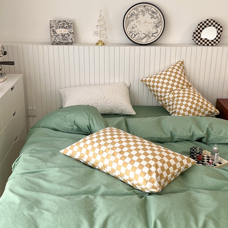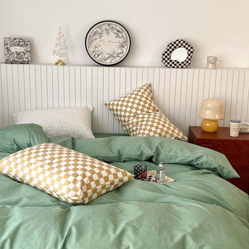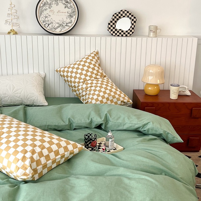昔可2022新款混搭纯色棋盘格套件四件套 果绿黄棋盘