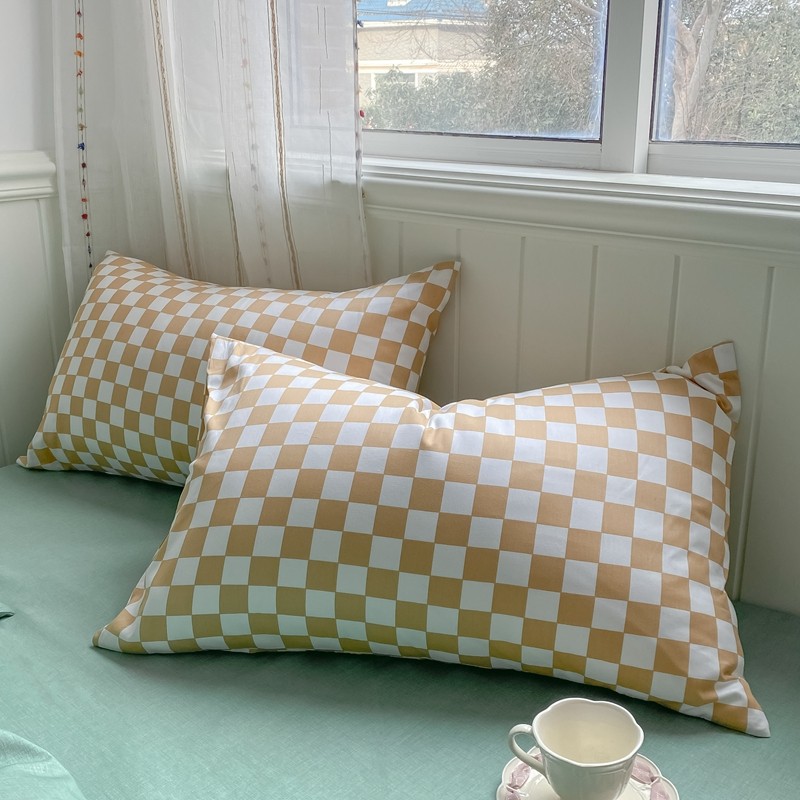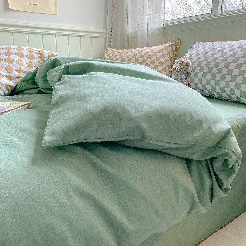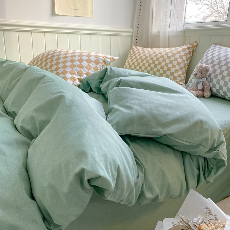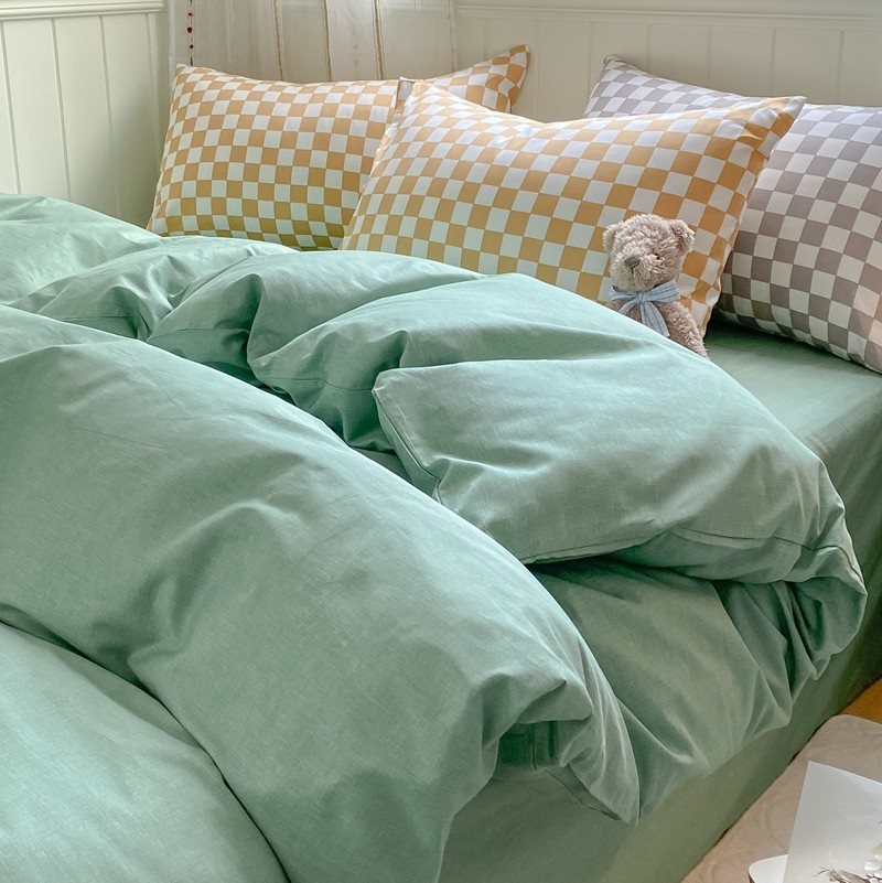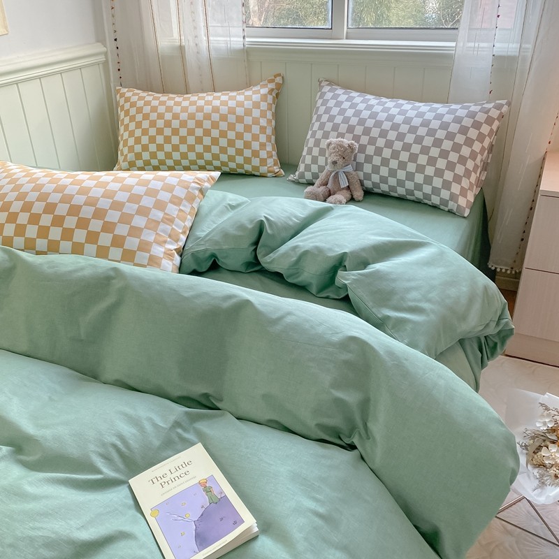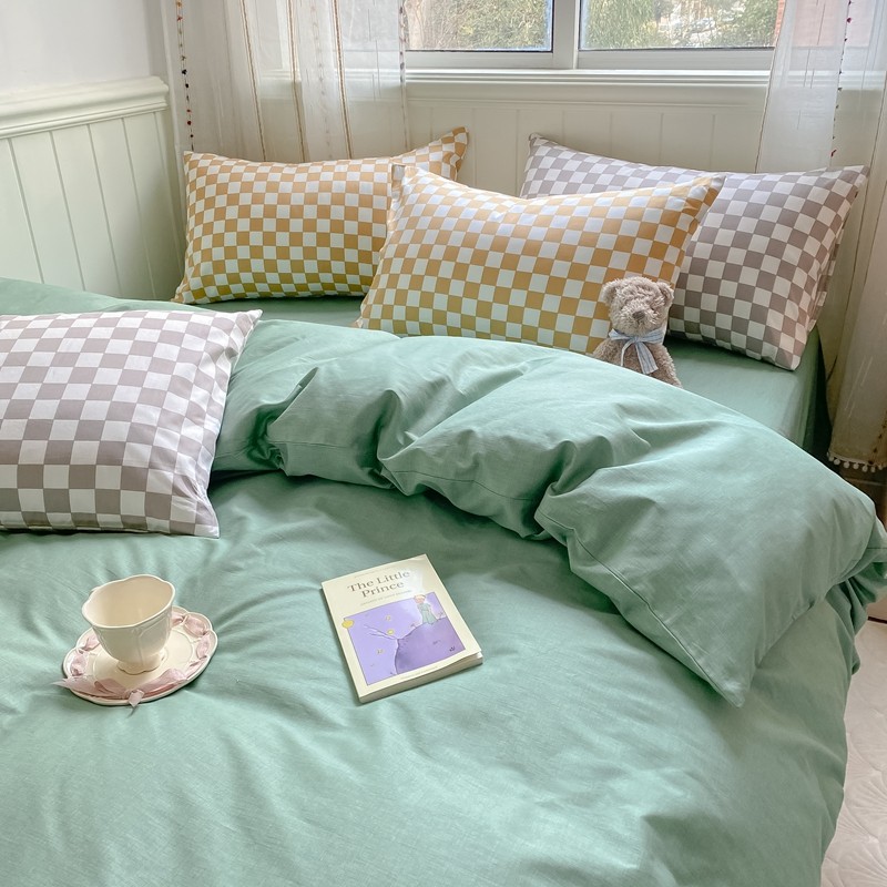 昔可2022新款混搭纯色棋盘格套件四件套 果绿黄棋盘