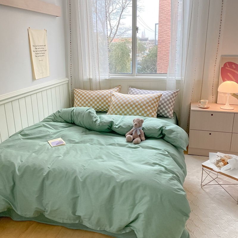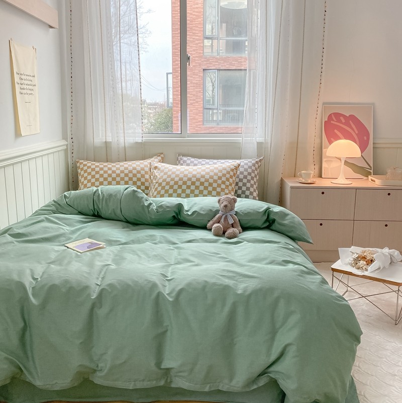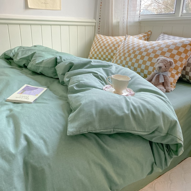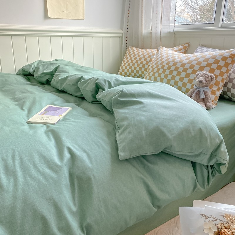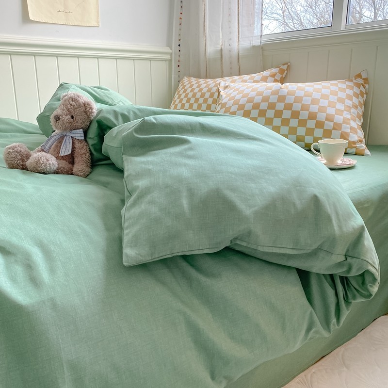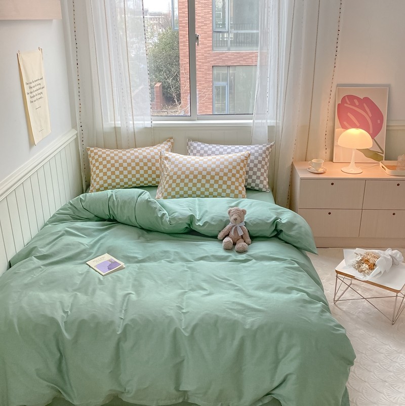 昔可2022新款混搭纯色棋盘格套件四件套 果绿黄棋盘
