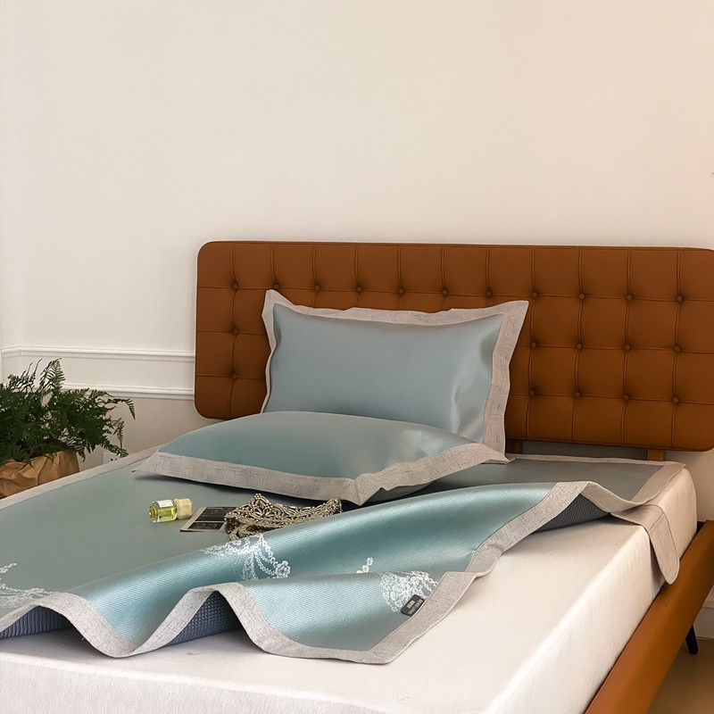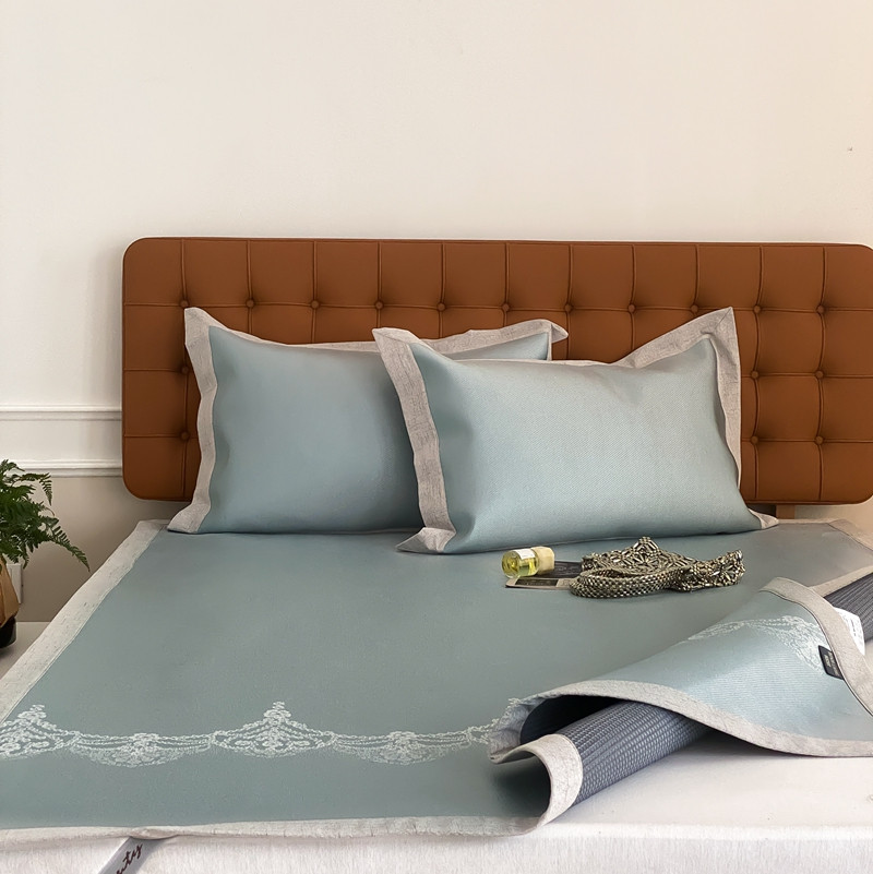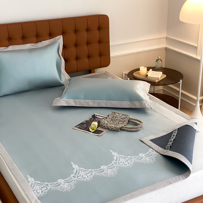 本希 2022新款高端床席款水洗冰丝席-简约款 蕾丝-绿床席款