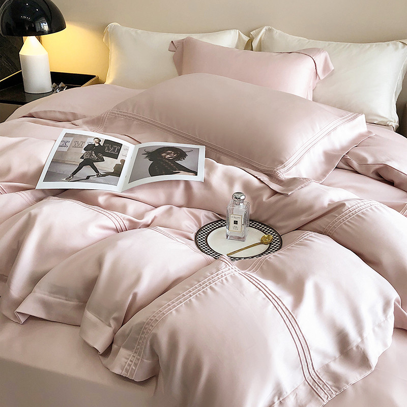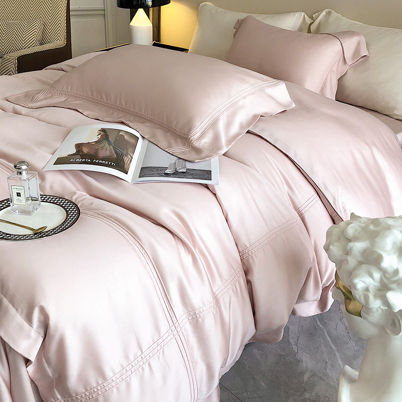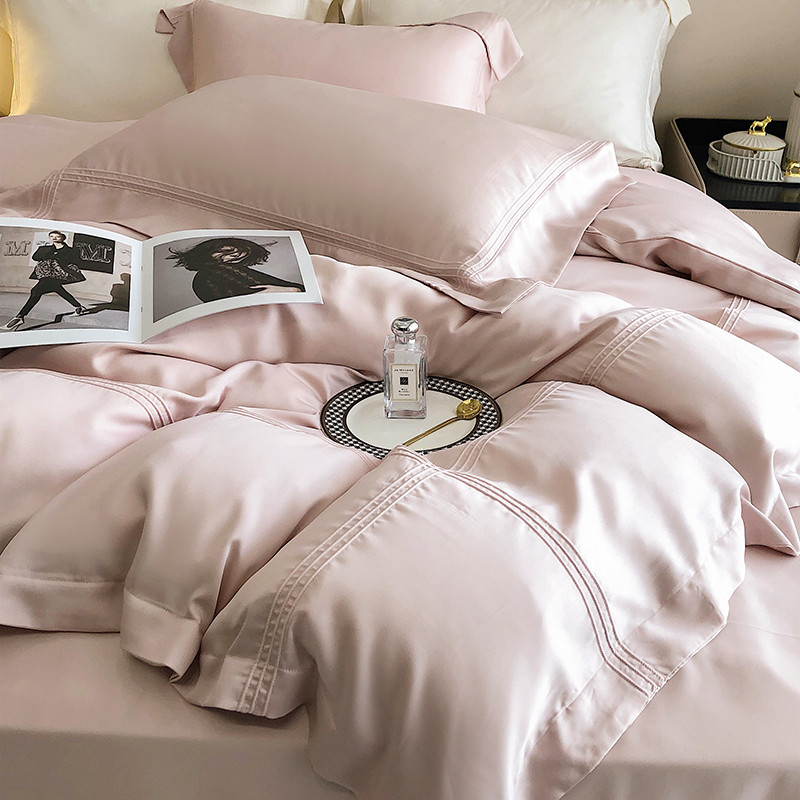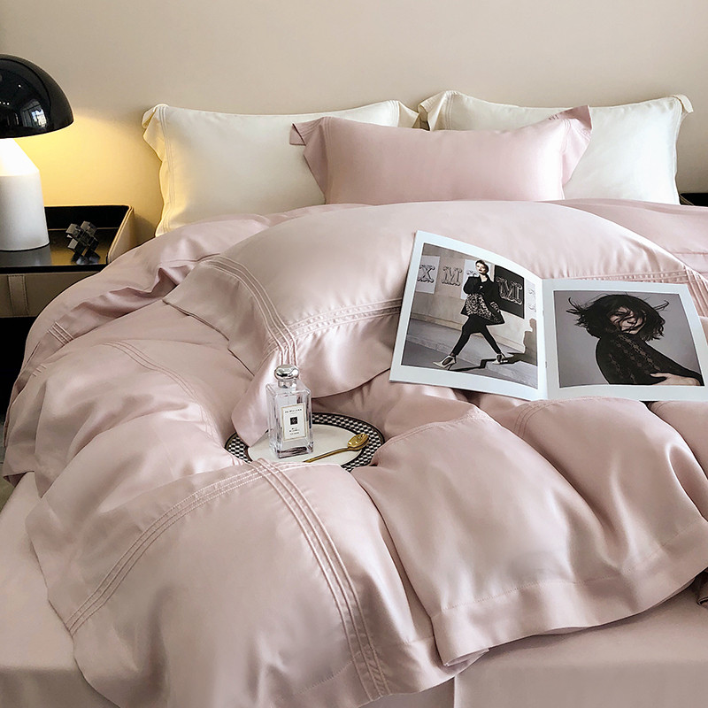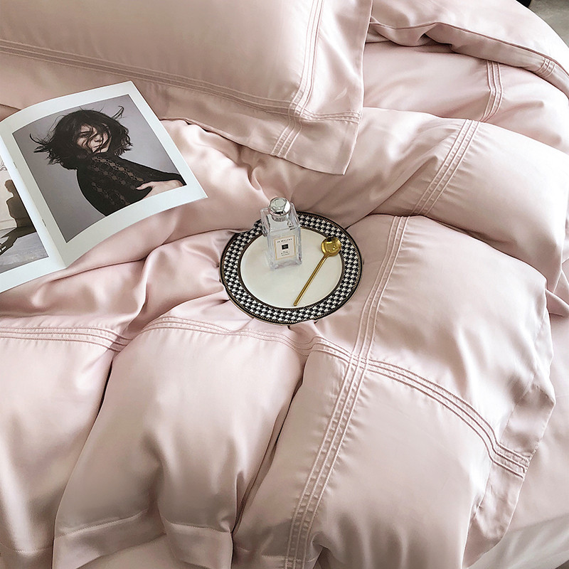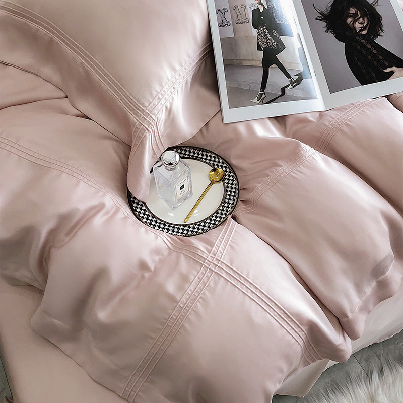 馨蕊家居 2022新款80S兰精天丝高定四件套简初夏粉
