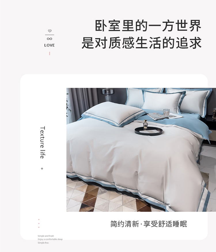 商品名称:好阁 2023新款100支长绒棉双股全棉极简双拼四件套 白蓝