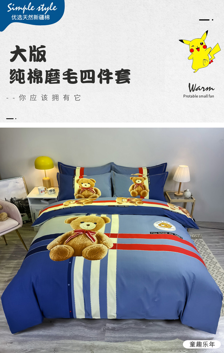 当前位置: 91家纺网 > 商品网购 > 床品套件 > 四件套 > 普通磨毛四件套 > 金爱家 2023新款大版卡通磨毛四件套 童趣乐年