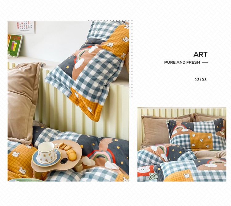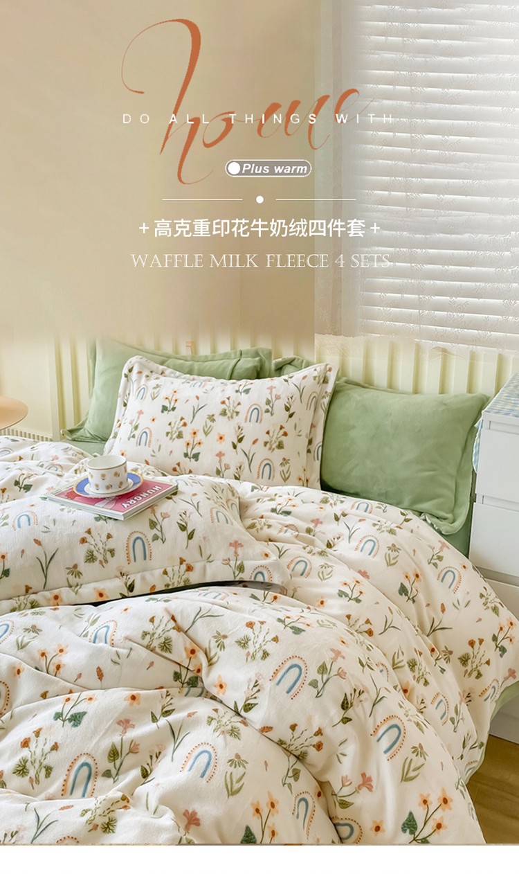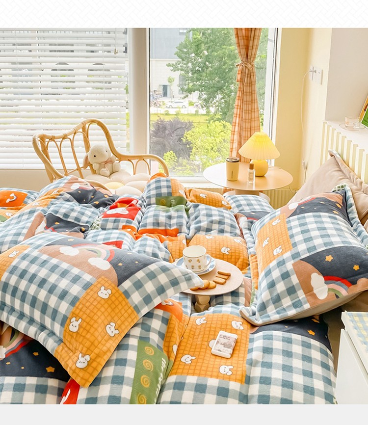 呗旺鹿 2022年印花小清新加厚保暖牛奶绒四件套直播 缤纷熊