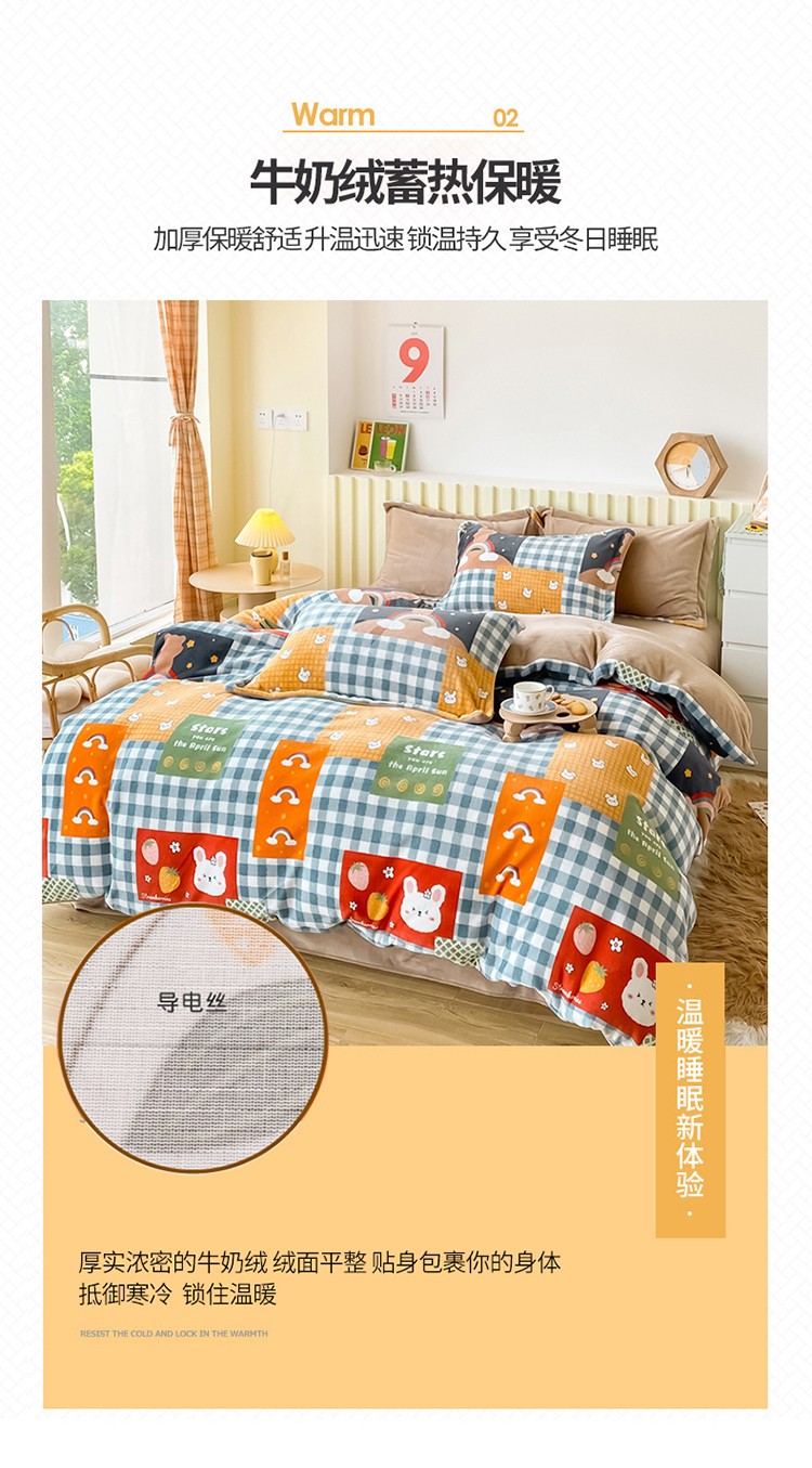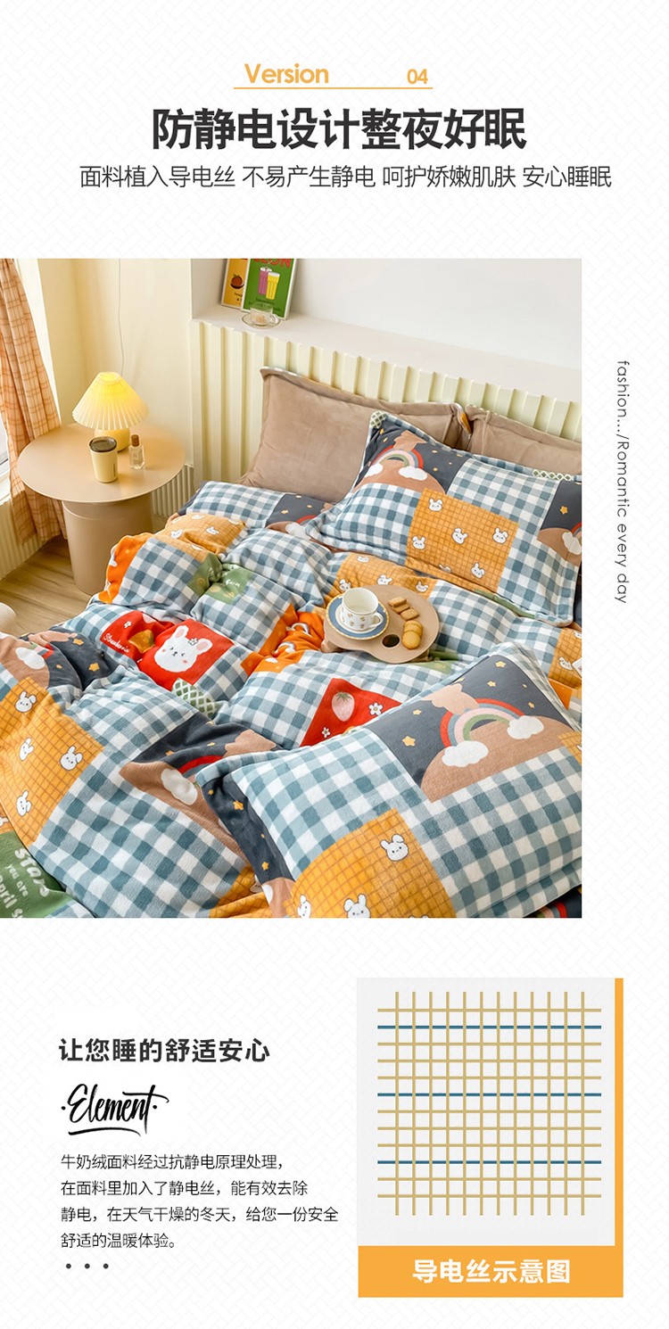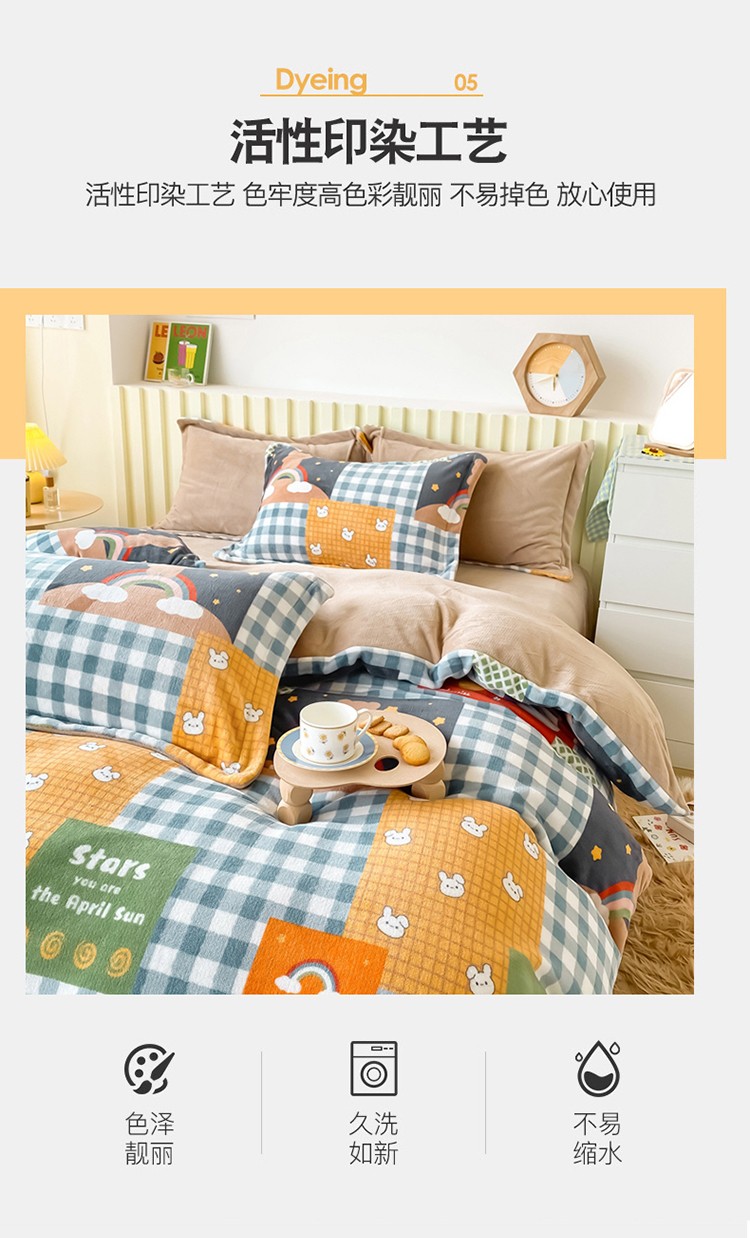 商品名称:呗旺鹿 2022年印花小清新加厚保暖牛奶绒四件套直播 缤纷熊