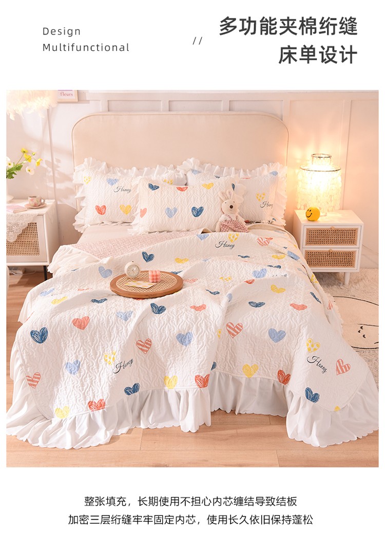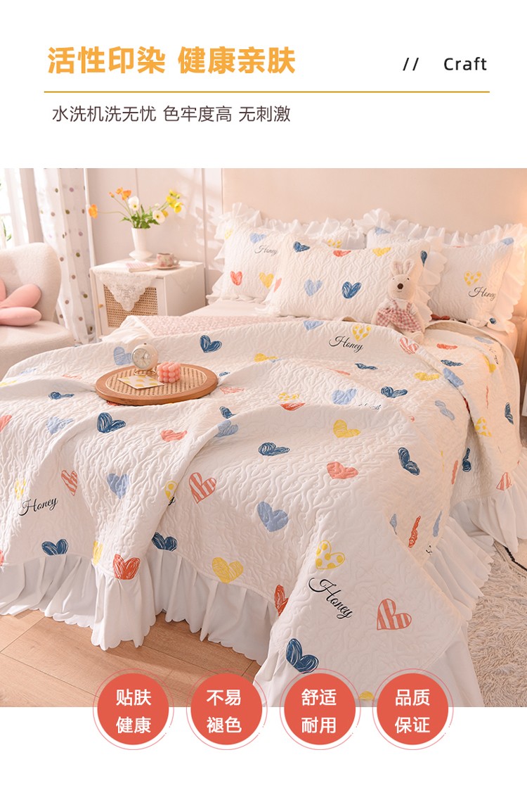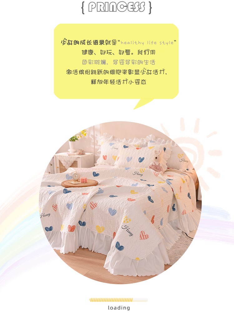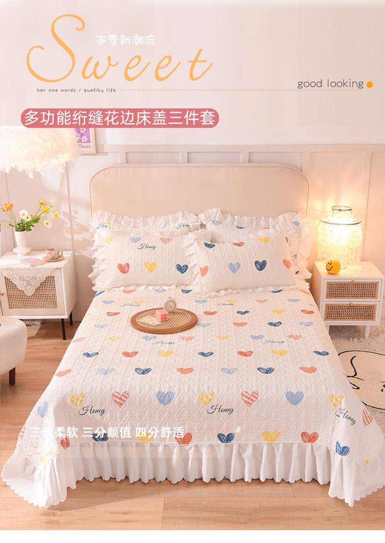 当前位置: 91家纺网 > 商品网购 > 床品套件 > 三件套 > 金盛皇朝2022韩版公主风绗绣三层夹棉床盖宿舍床单心动时光