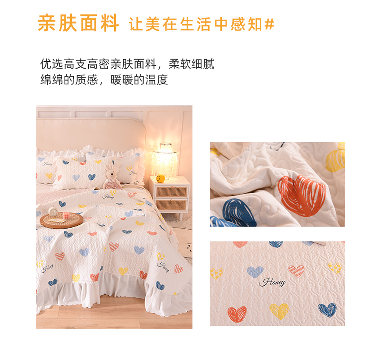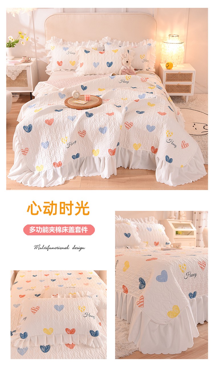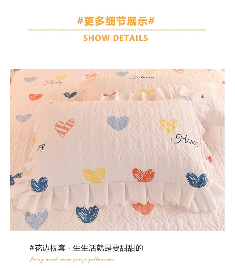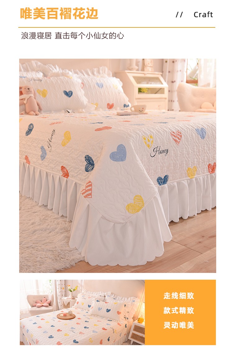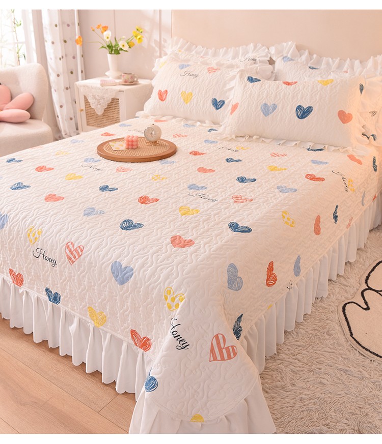 当前位置: 91家纺网 > 商品网购 > 床品套件 > 三件套 > 金盛皇朝2022韩版公主风绗绣三层夹棉床盖宿舍床单心动时光