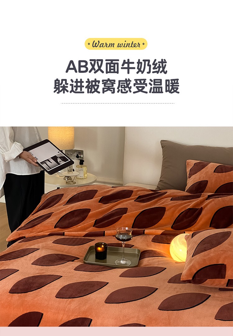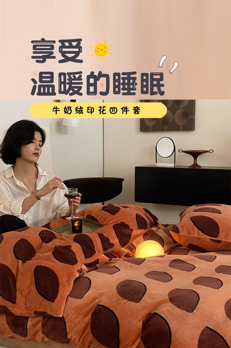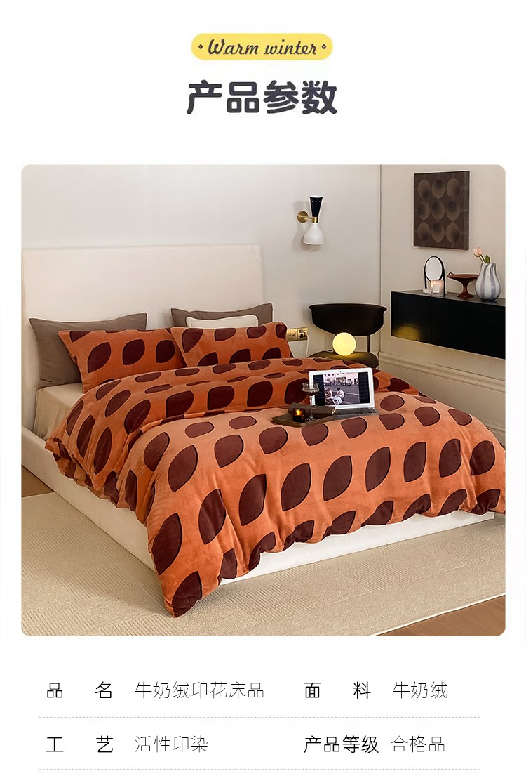 当前位置: 91家纺网 > 商品网购 > 床品套件 > 四件套 > 牛奶绒四件套 > 网客家纺2024年新款牛奶绒印花四件套 赤陶