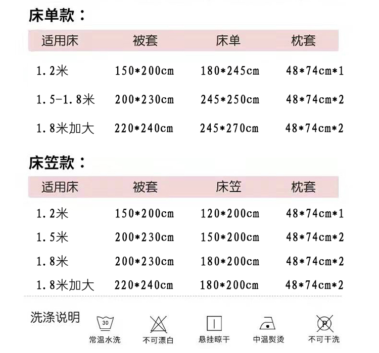 1.8m被套加大床笠款四件桃套 (被套220*240) | ¥140.00 |