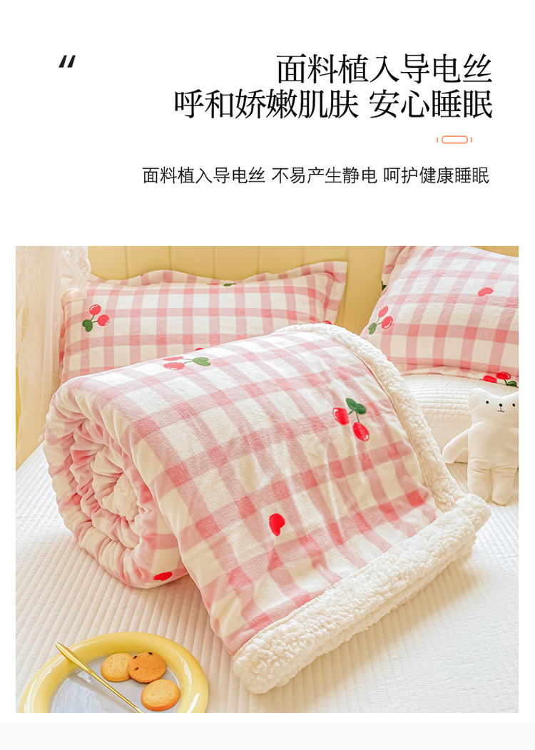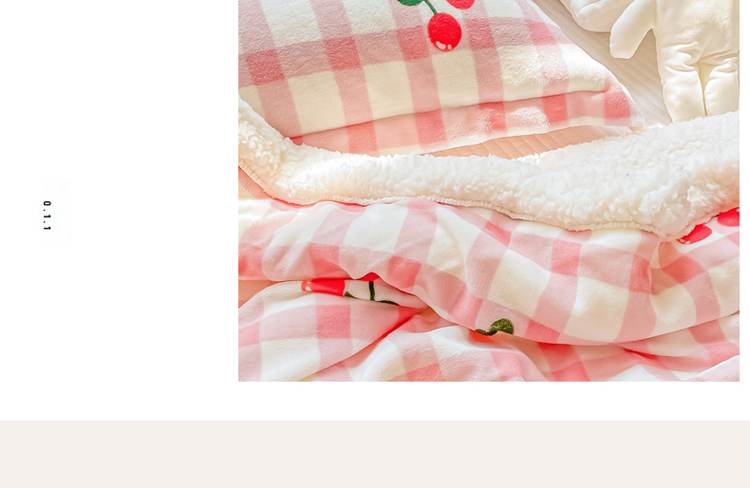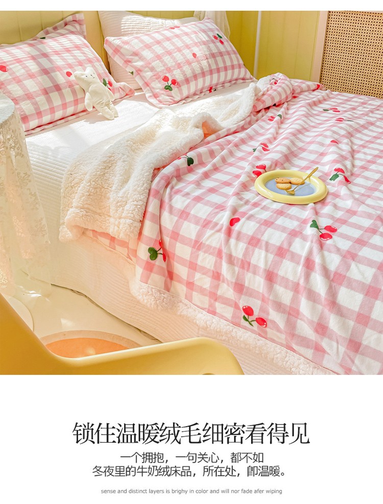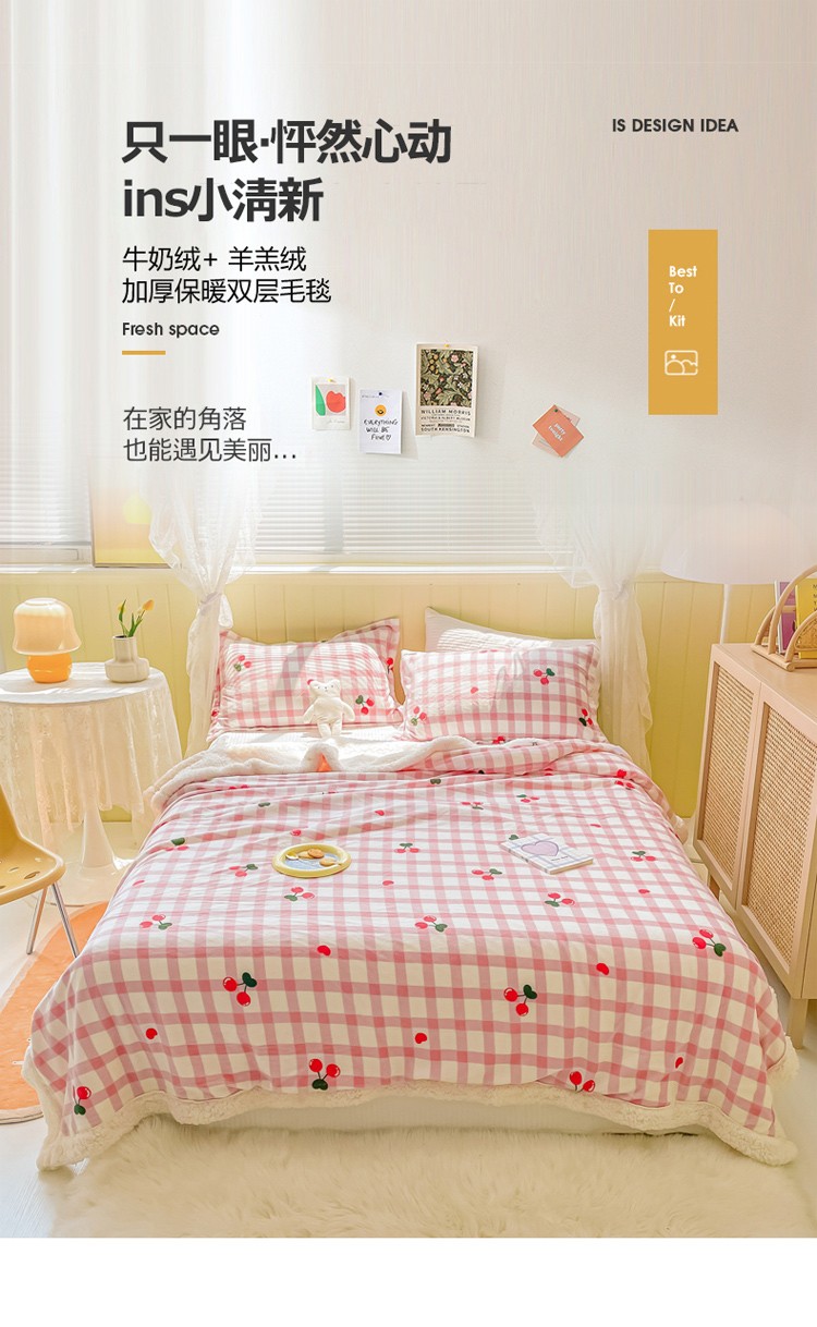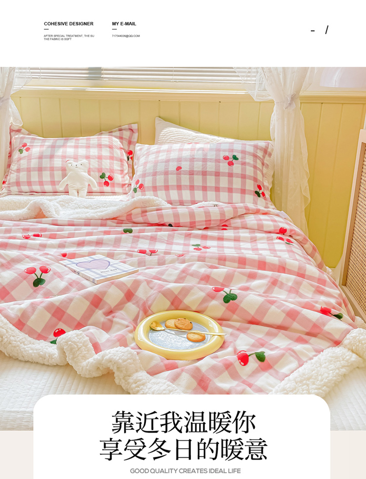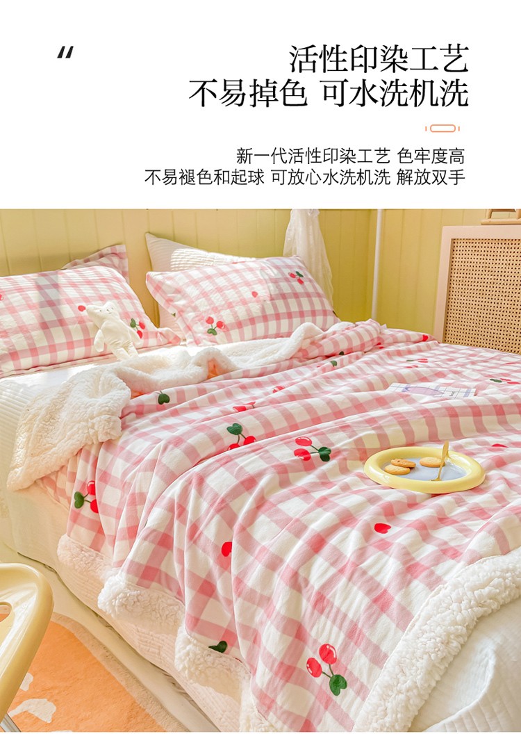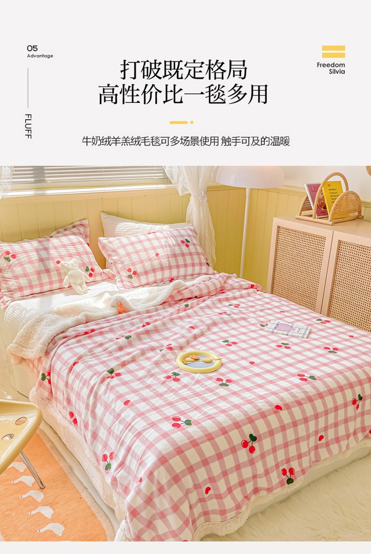 沐慕 2022新款牛奶绒拼羊羔绒毛毯 小樱桃