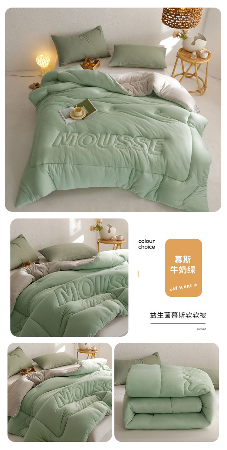 商品名称:有货 2023秋冬新款慕斯软软冬被春秋被纯色被子被芯 慕斯牛奶绿