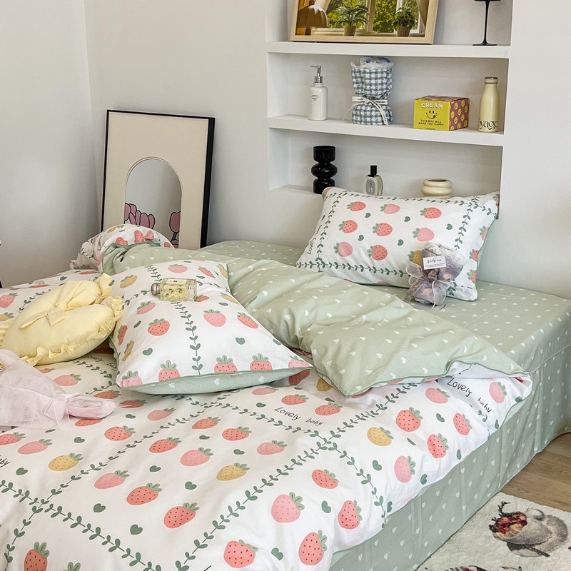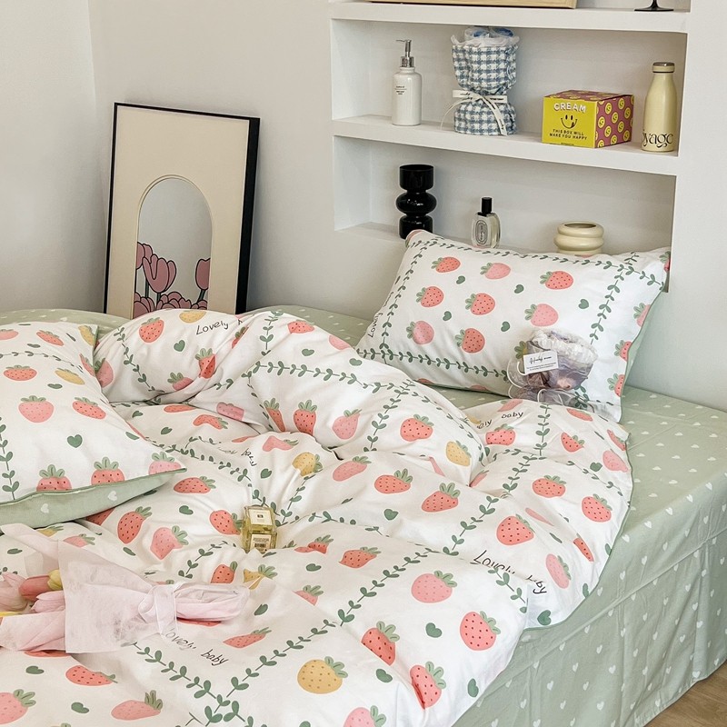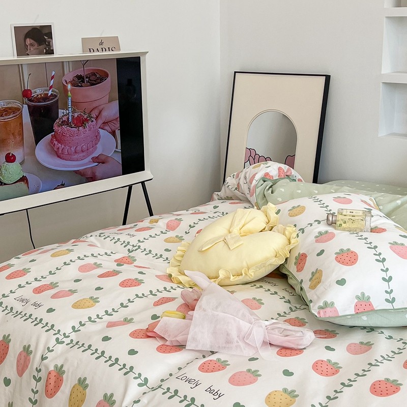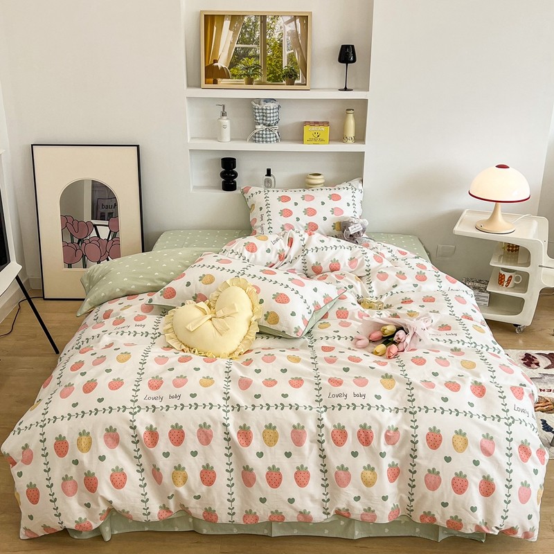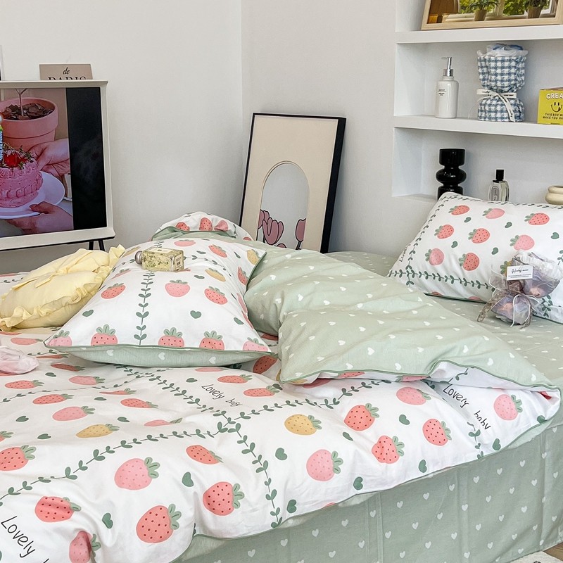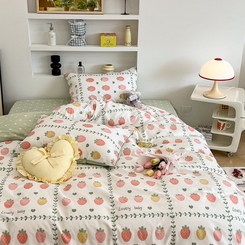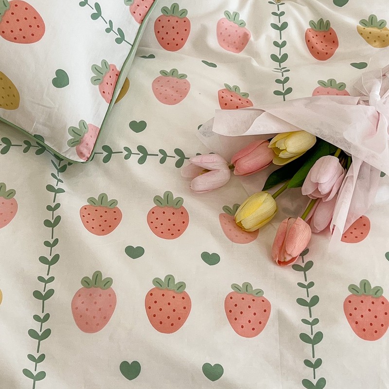 昔可2022新款嵌绳全棉四件套组图二 恋夏草莓