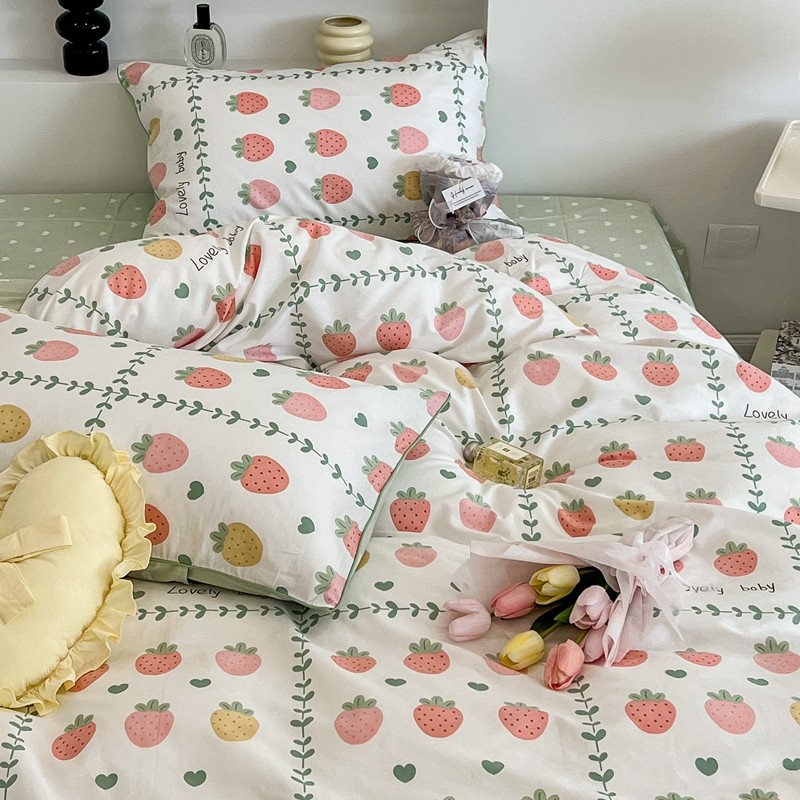 商品名称:昔可2022新款嵌绳全棉四件套组图二 恋夏草莓