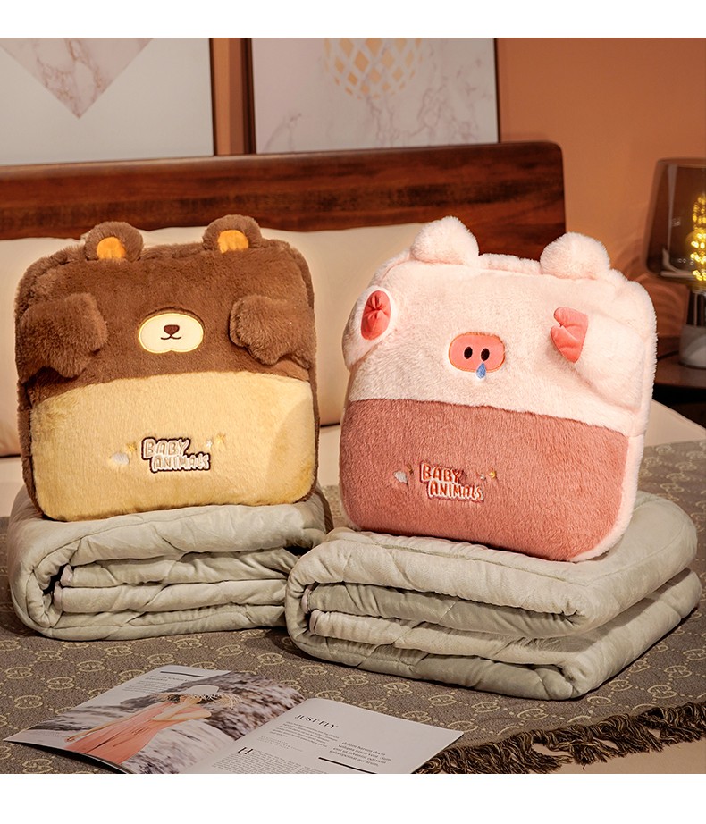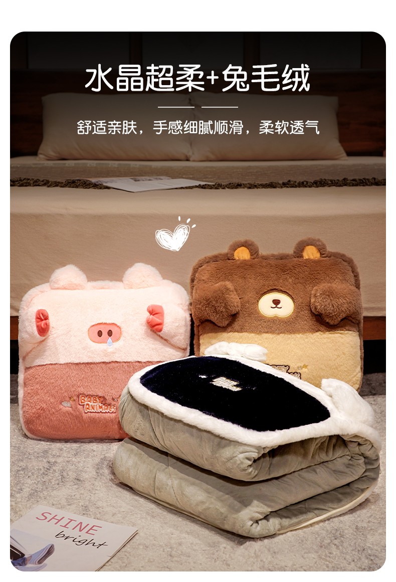 (总)仟亿莱 2022新款捂脸动物加绒加厚抱枕被,鼻涕猪被子,害羞鸭被子,可爱龙被子,正经熊被子