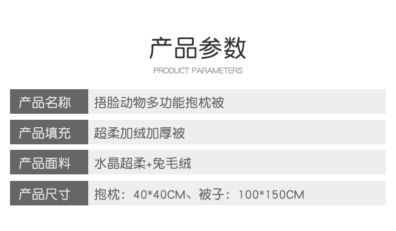 商品名称:(总)仟亿莱 2022新款捂脸动物加绒加厚抱枕被