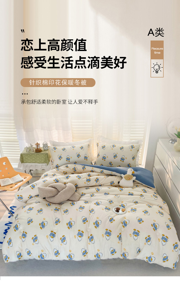 • 91家纺网 家纺一手货源 找家纺 寐居 2022新款针织棉A类超柔保暖冬被 可达鸭