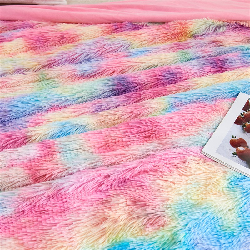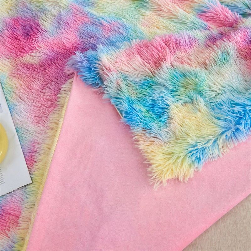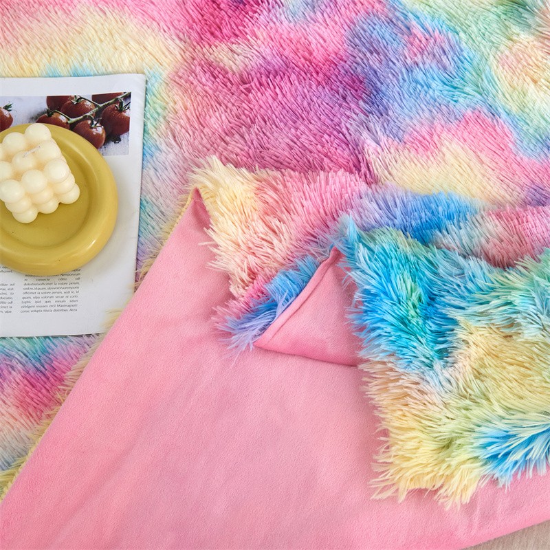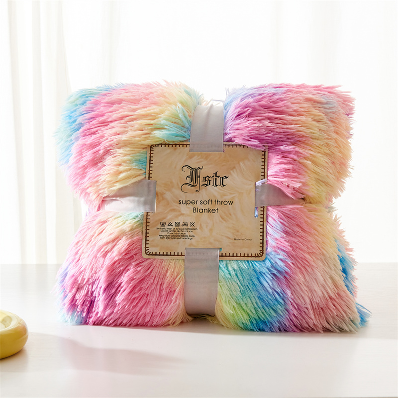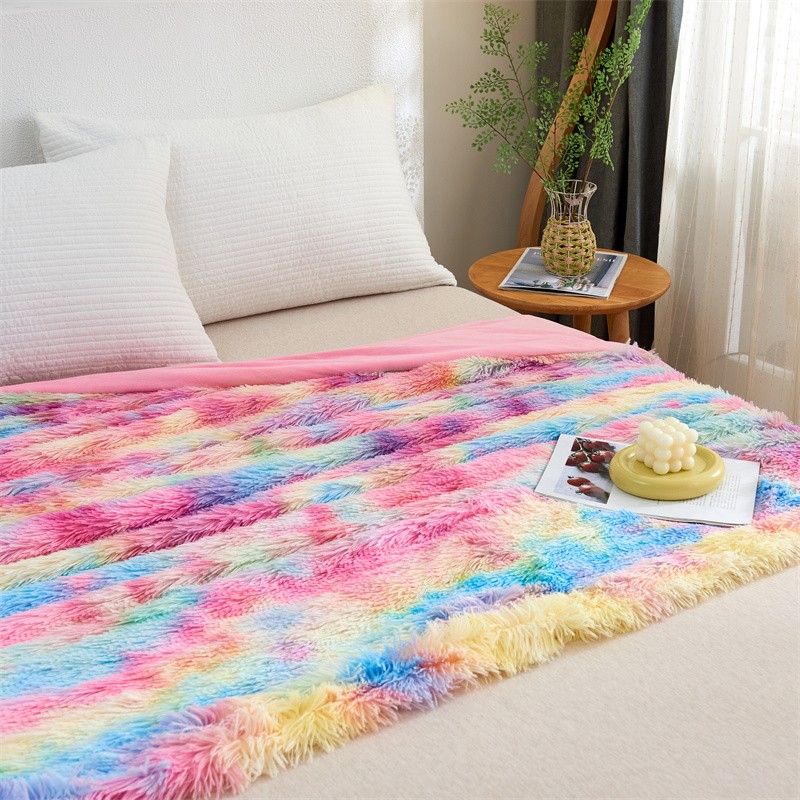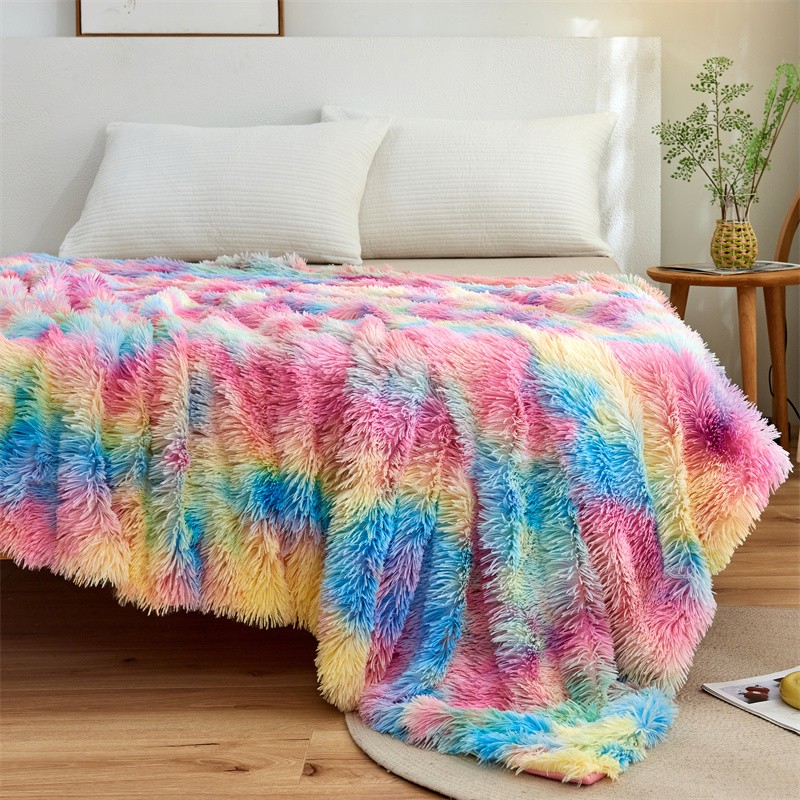 品尚嘉2025水貂绒毛毯长毛绒法莱绒双层跨境外贸毯子深七彩
