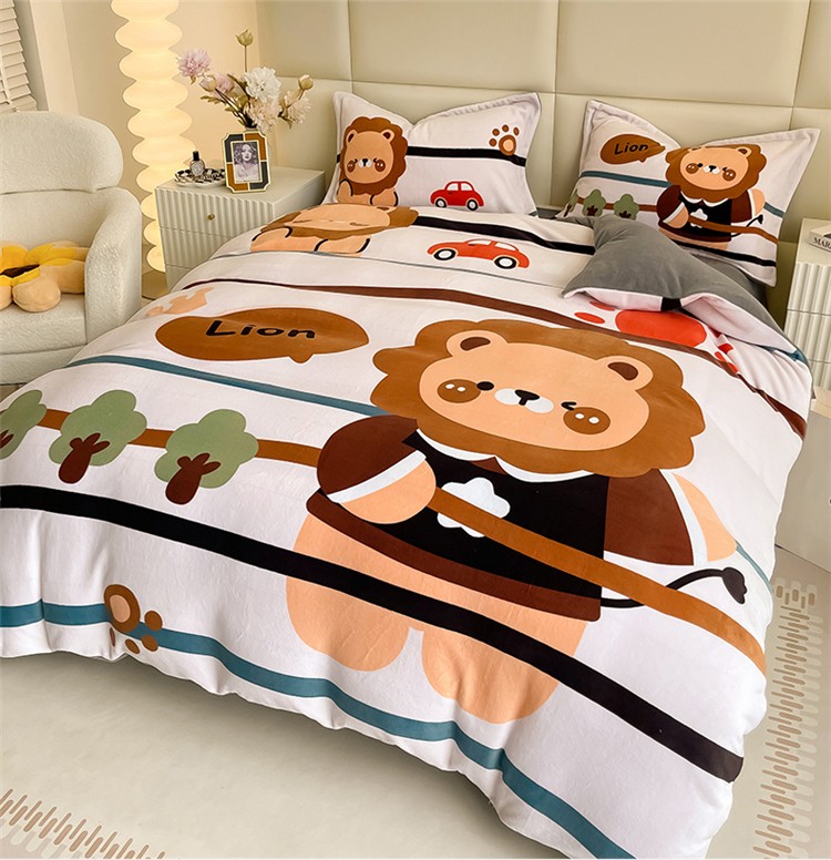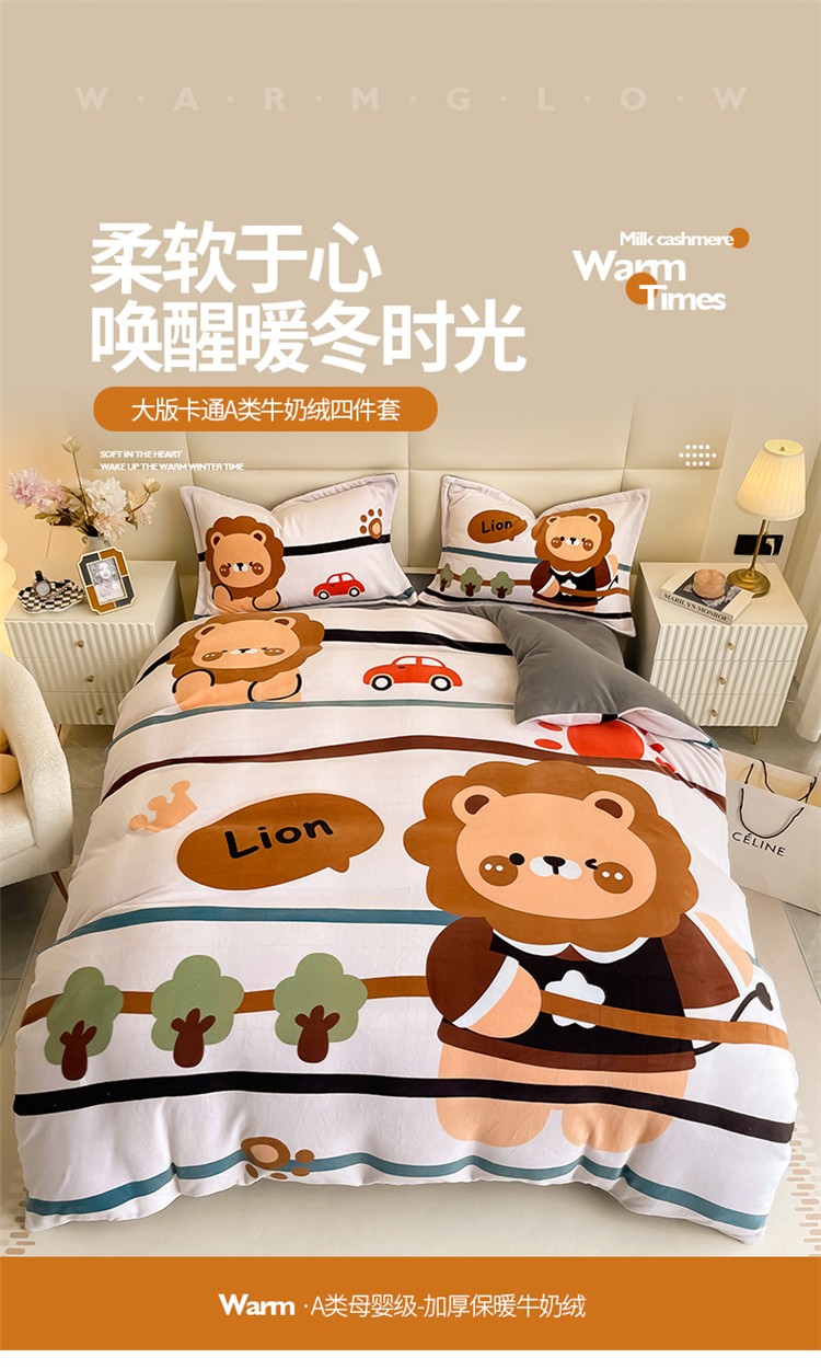 2022懒猫家纺大版卡通印花牛奶绒四件套 狮子王