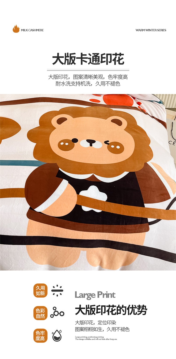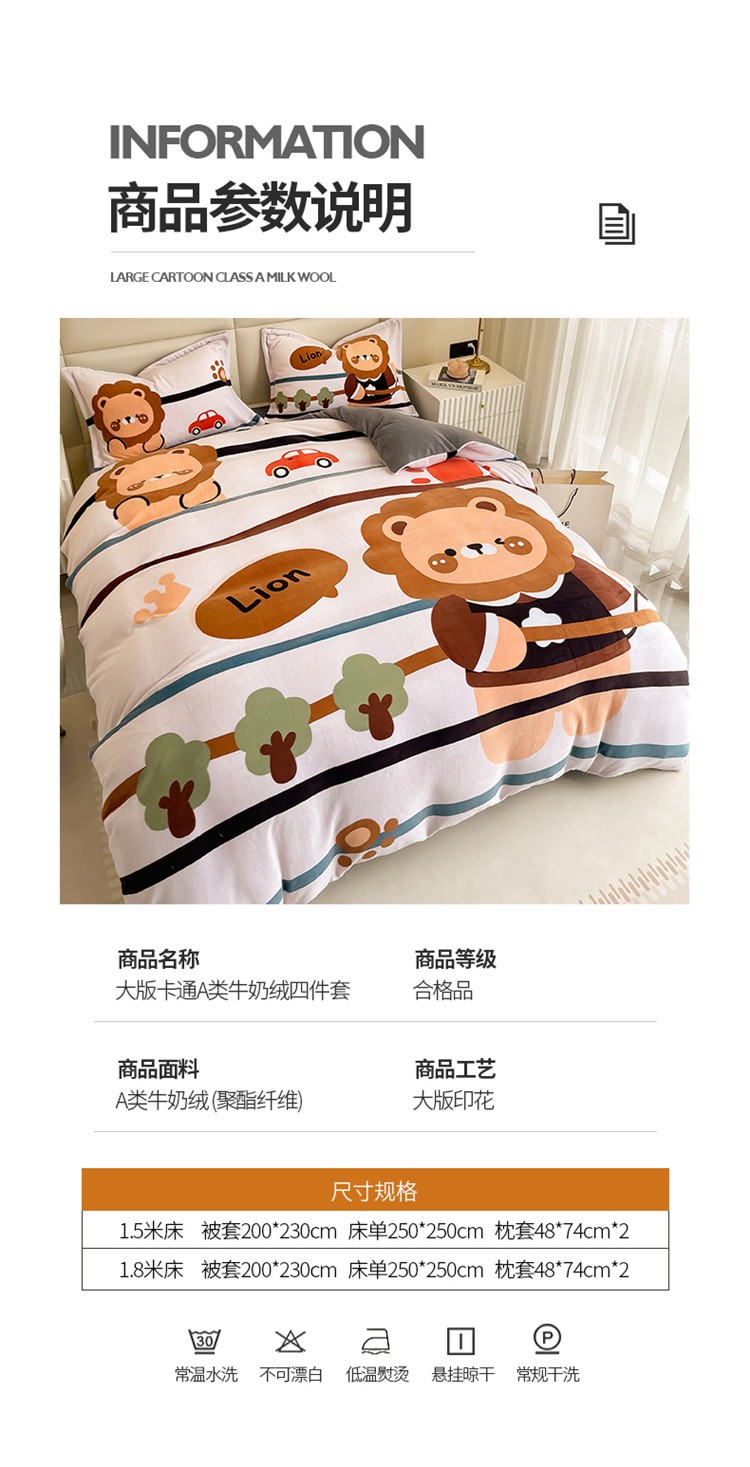 商品名称:2022懒猫家纺大版卡通印花牛奶绒四件套 狮子王