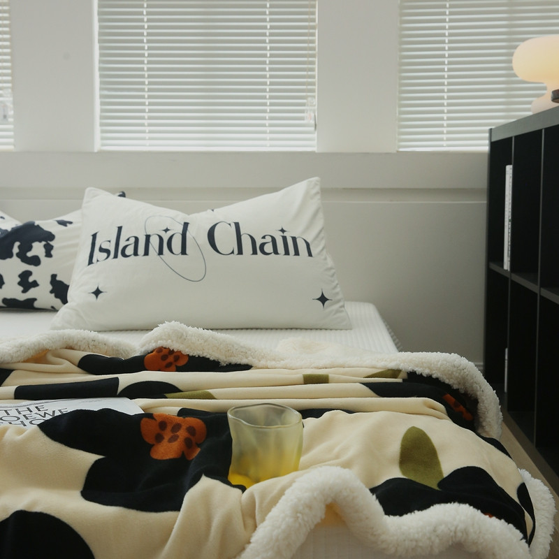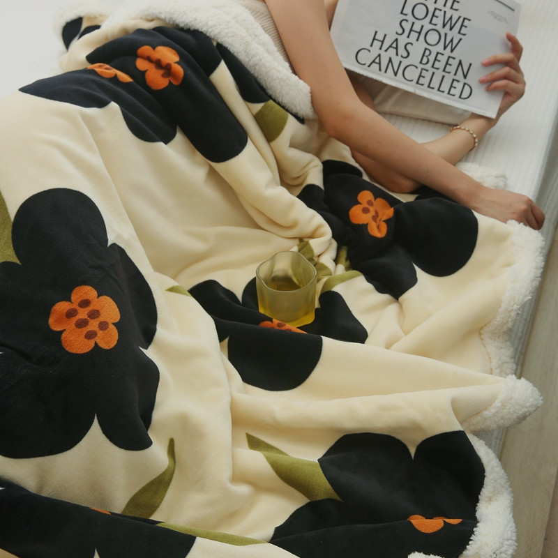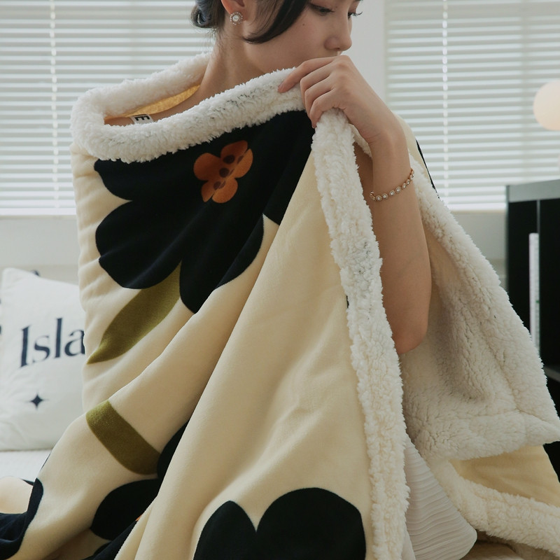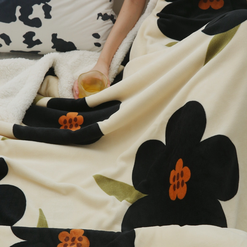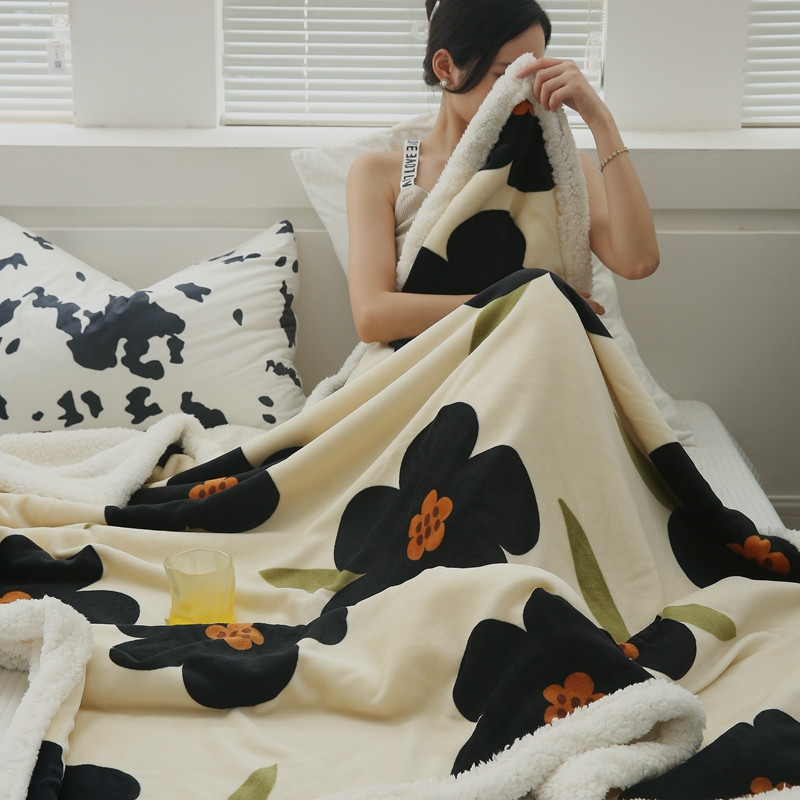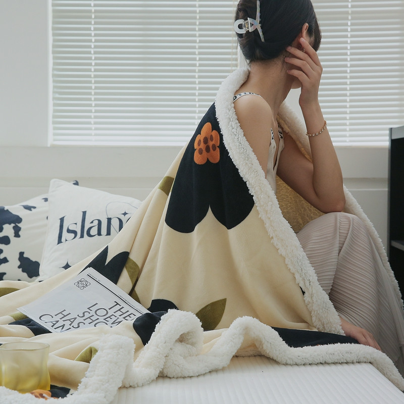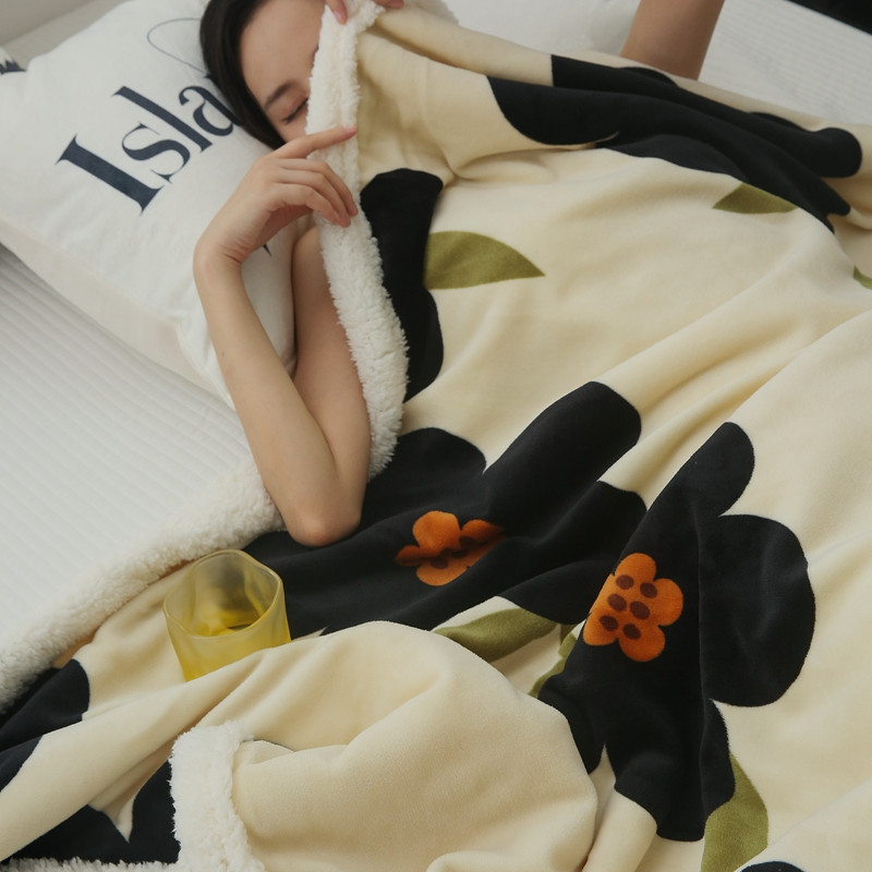 圆岛家纺 2022秋冬新品牛奶绒羊羔绒毛毯 太阳花