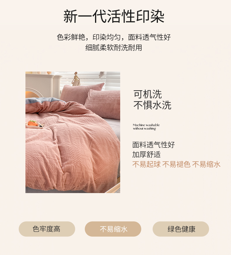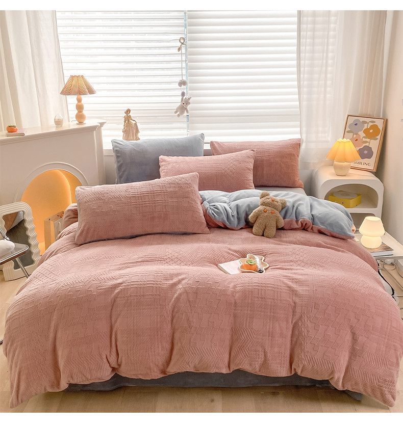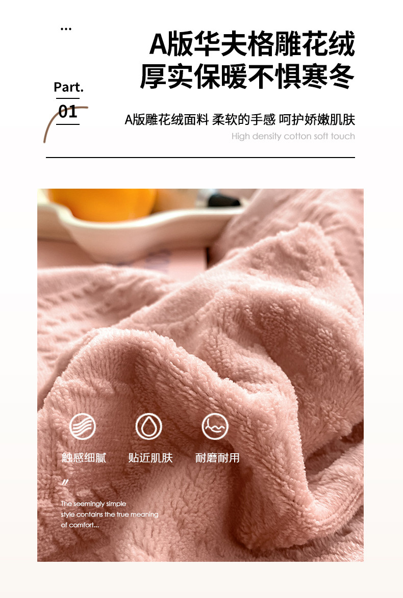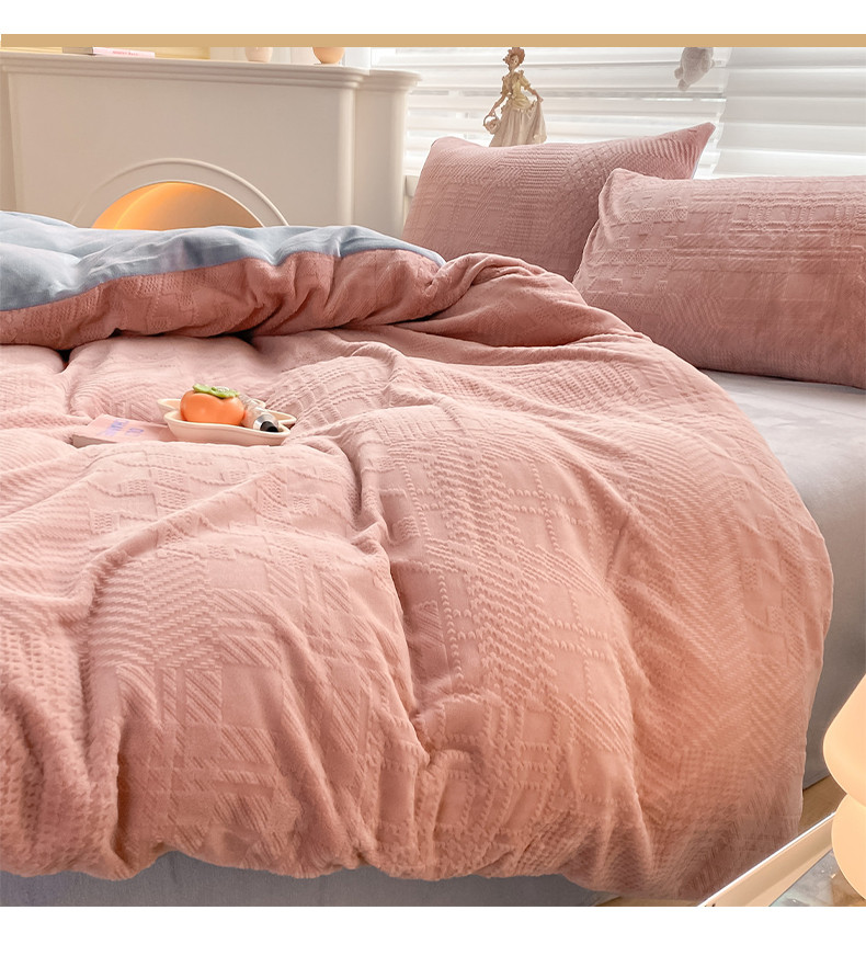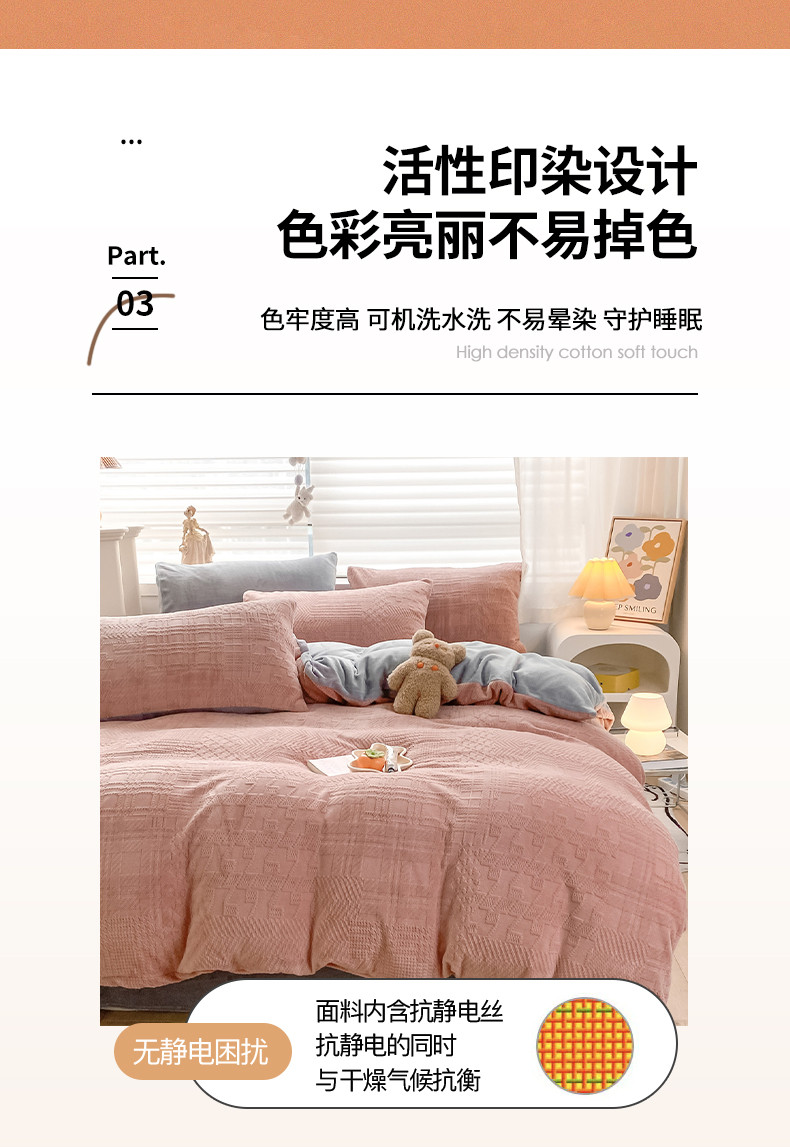 当前位置: 91家纺网 > 商品网购 > 床品套件 > 四件套 > 雕花绒四件套 > 古吉梦 2022新款A类高克重华夫格雕花绒四件套 华夫格-豆沙粉+浅灰