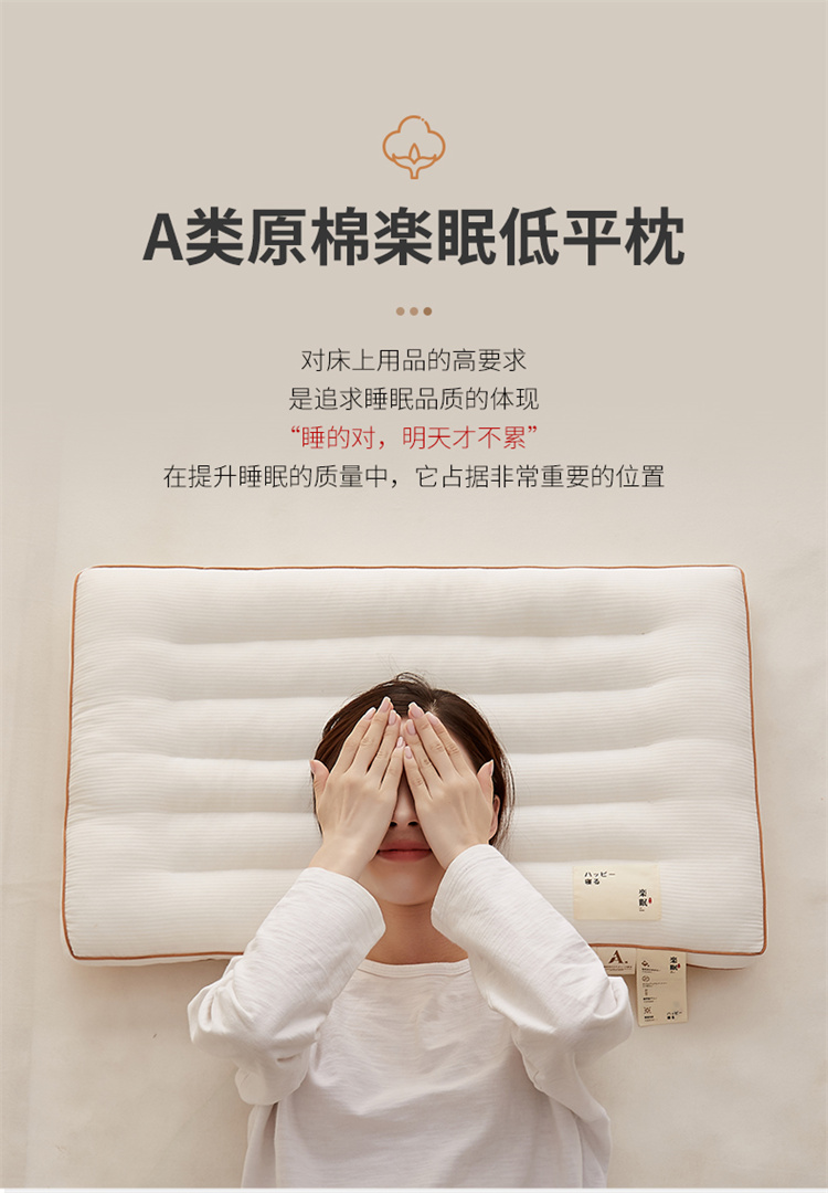 (总)乐可 2022新款A类母婴原棉楽眠低平枕芯