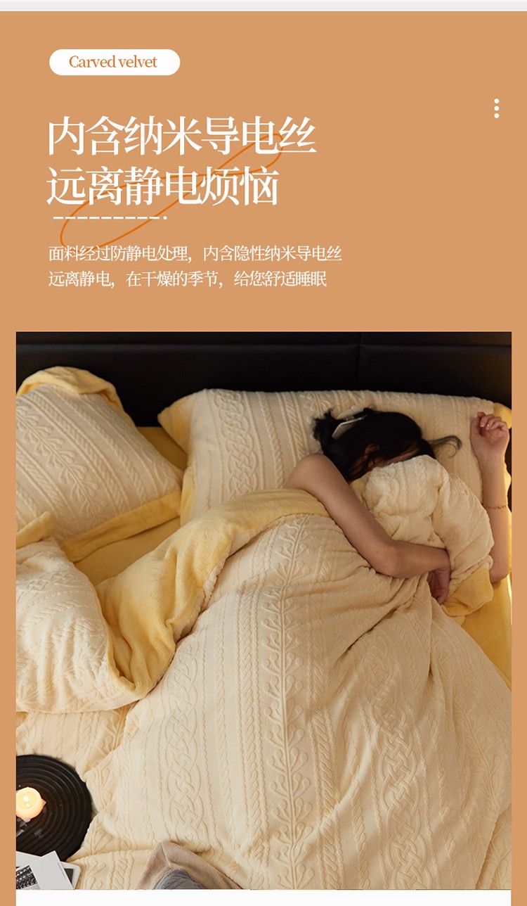 (总)梦享生活 2022新款牛奶雕花绒四件套
