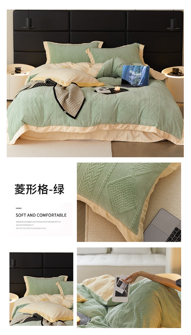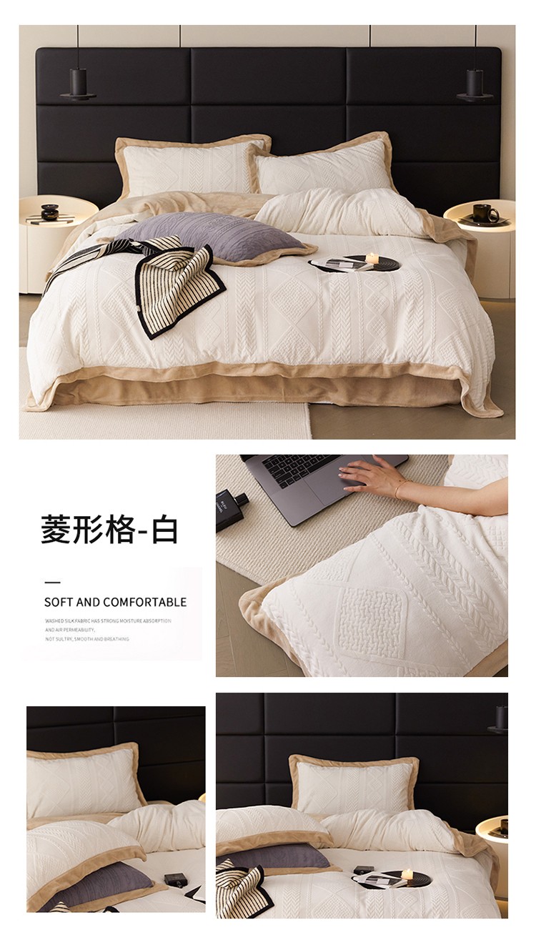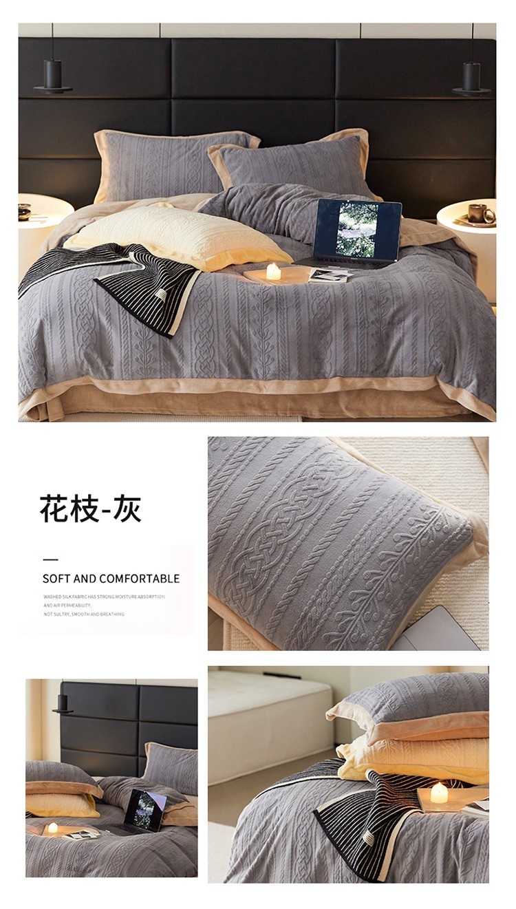 (总)梦享生活 2022新款牛奶雕花绒四件套,花枝-奶黄,花枝-灰,花枝-粉,菱形格-绿,菱形格-白