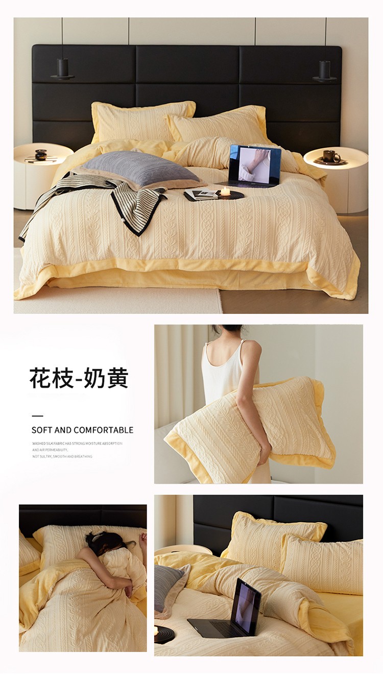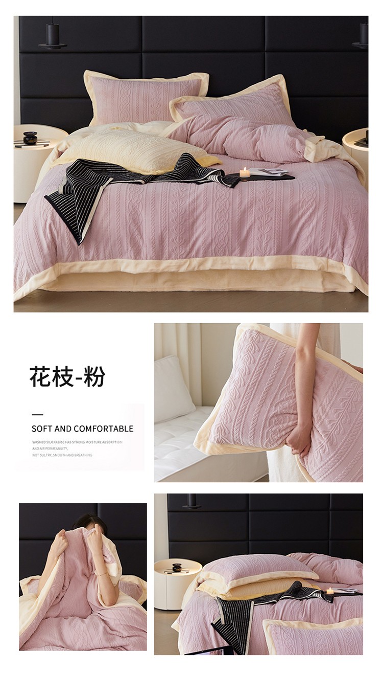 (总)梦享生活 2022新款加厚牛奶雕花绒四件套,花枝-粉(普通款),花枝-灰(普通款),花枝-奶黄(普通款),菱形格-白(普通款),菱形格-绿(普通款)