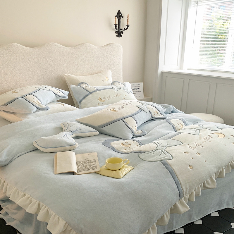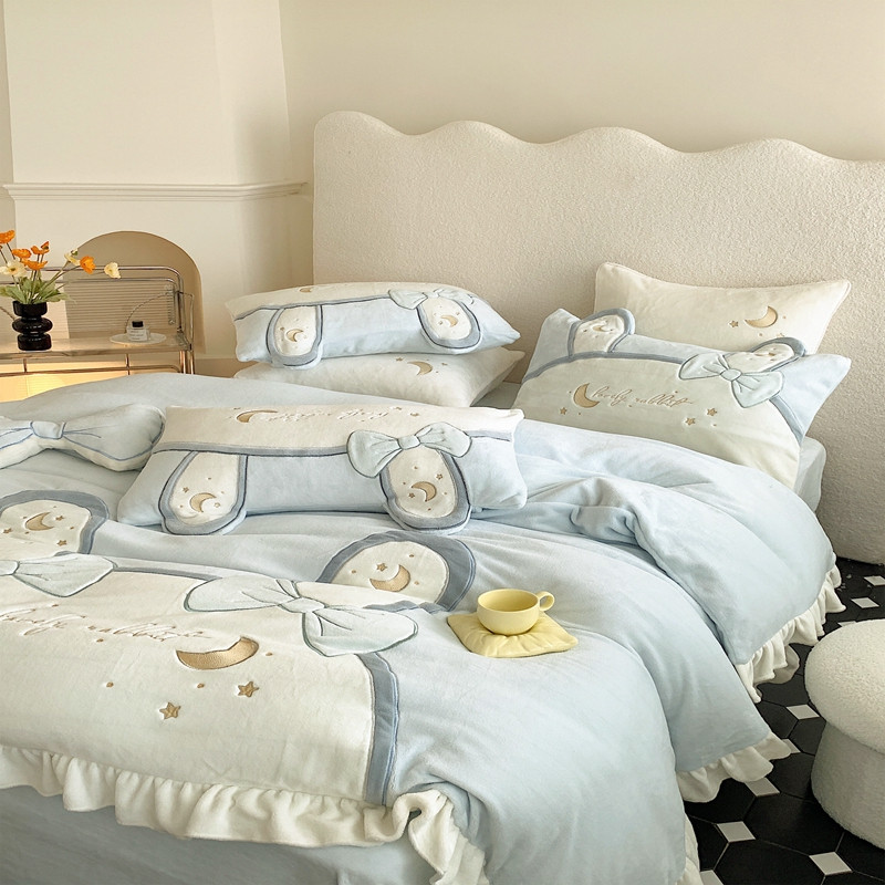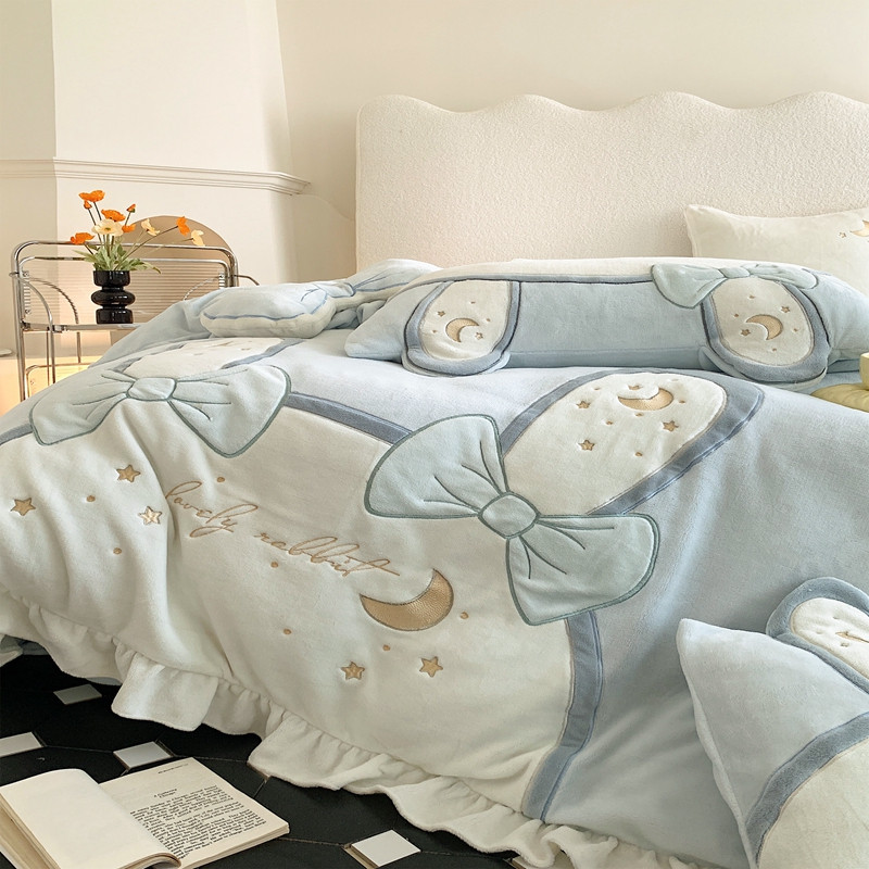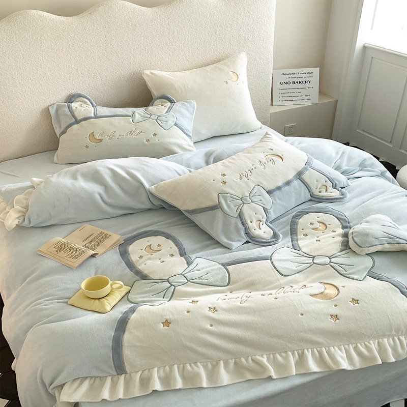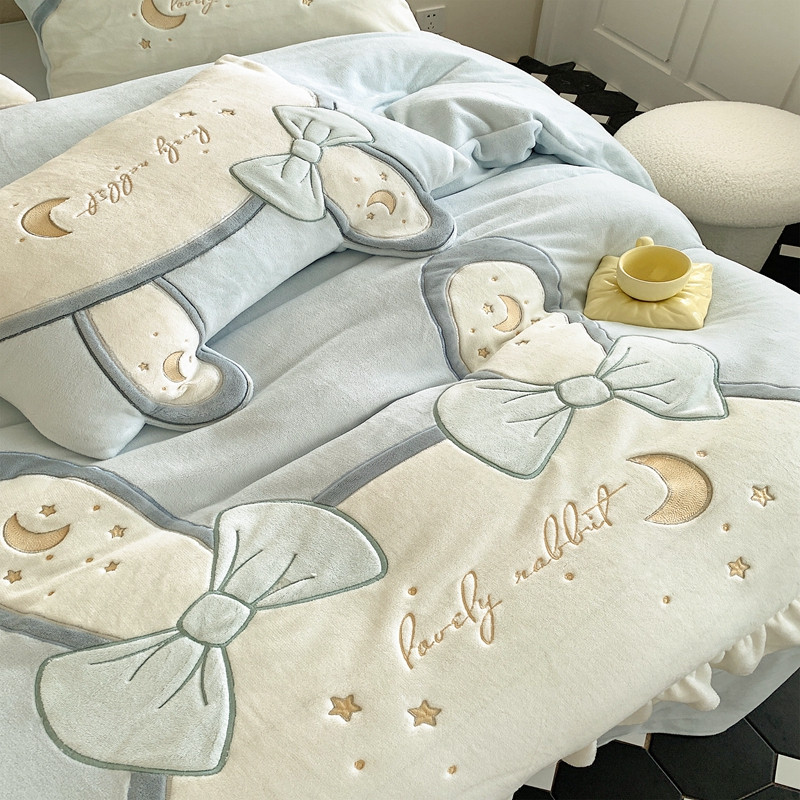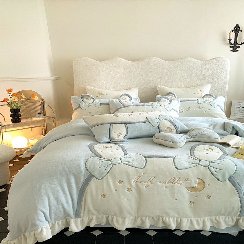 馨蕊 2022新款轻奢煦暖绒四件套彩虹兔 彩虹兔-蓝