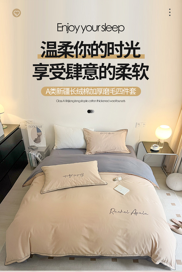 (总)艾莱家纺 2025新款A类新疆长绒棉加厚柔顺磨毛四件套--爱永恒系列,爱永恒-可可奶,爱永恒-大地色,爱永恒-北欧灰,爱永恒-抹茶绿,爱永恒-浅豆沙,爱永恒-嫣红